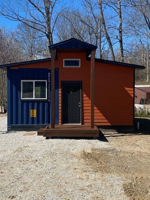 Welcome to our modern shipping container home, tucked away in a 3 acre section of woods. This 40 foot high cube has been transformed into the perfect place to allow you to relax and escape reality. This Oasis includes everything from a porch swing daybed, hot tub, fire pit, and dual sided fireplace. The details are unmatched.