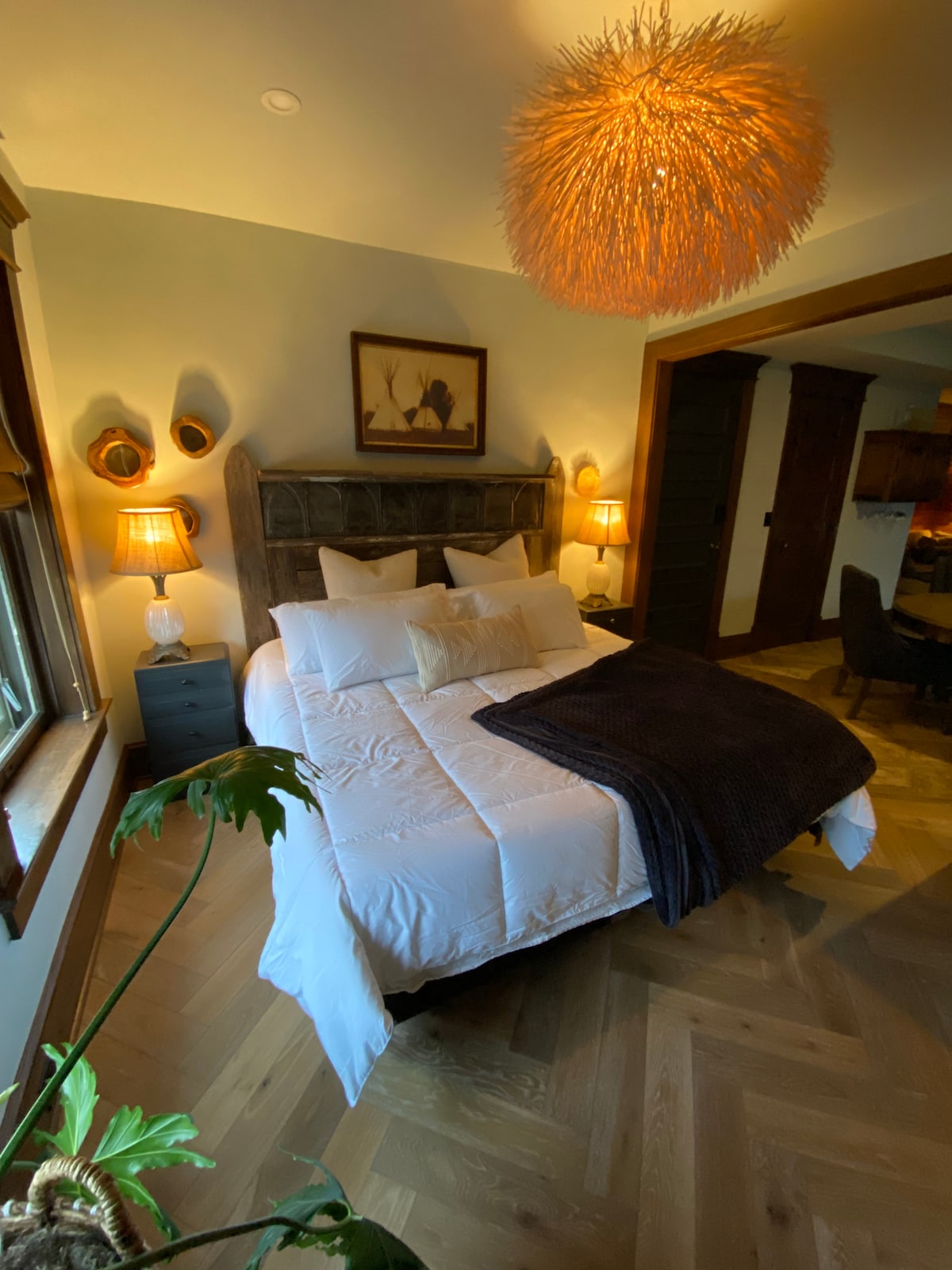 The Gallery is a 2 bedroom 1.5 bathroom suite with amazing city views. Located on Illinois and Market Street, you will have a birds eye view of Monument Circle and The Arts Garden. Enjoy a clean, spacious, and private stay while being close to all Indianapolis has to offer. Lucas Oil, the Indianapolis Convention Center, Gainbridge Fieldhouse, and popular restaurants are all in walking distance All art work on display are sourced from local artists.