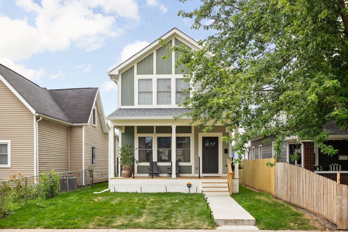 I am so excited to share my beautiful house with you, located in the Bates Hendricks neighborhood of Indy. Close to Fountain Square, Lucas Oil Stadium, Gainbridge Fieldhouse and lots more fun. The house has 3 beautiful bedrooms, 2 ensuite. There is a lounge upstairs with a comfy leather futon for more sleeping room. Off that is a beautiful roof deck with gas BBQ, firepit and dining for 6+. Also located on the same street as the famous HGTV Good Bones girls shop. Come visit Indy!
