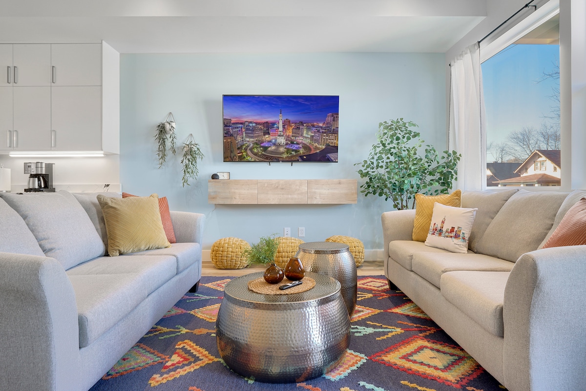 Relax in this modern 4BR Indianapolis getaway, perfect for families, groups, traveling nurses, and business travelers. Just minutes from Fountain Square, Lucas Oil Stadium, the Convention Center, major hospitals, and downtown. Sleeps 12 with multiple living areas, a private hot tub, and easy parking with free street parking plus a garage. Ideal for short or extended stays.