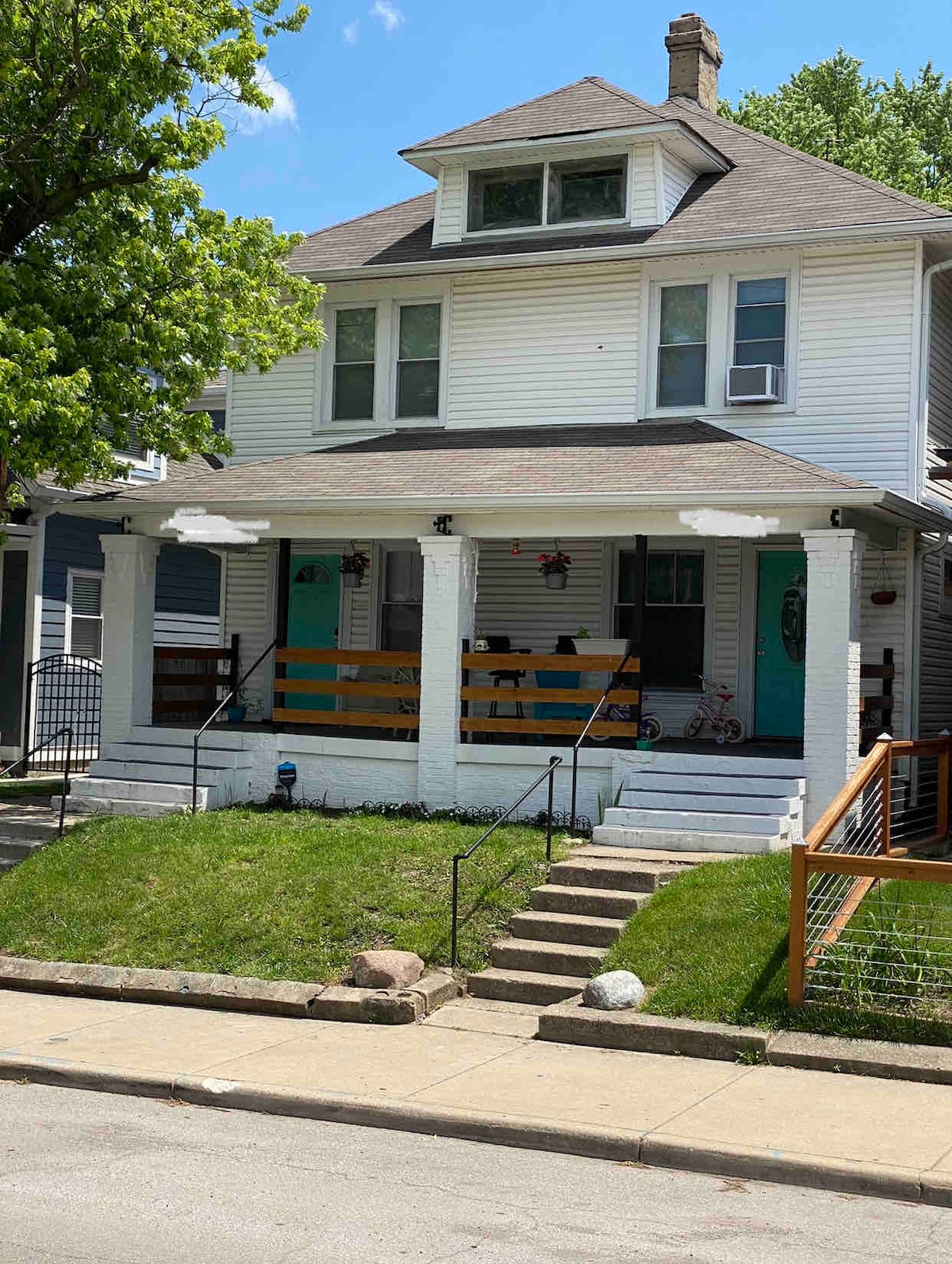 Book a night right on one of the Indy's favorite intersections! Updated 1 bed + 1 bath and outfitted with everything you will need, stay in our half of a duplex across from the upscale grocer, The Fresh Market. This corner has several great restaurants and brew pubs within steps of the front porch. Two blocks away, the Monon Trail resides and is Indy’s favorite way to walk and bike its most eclectic and lively neighborhoods. Bike share rentals are one block away.