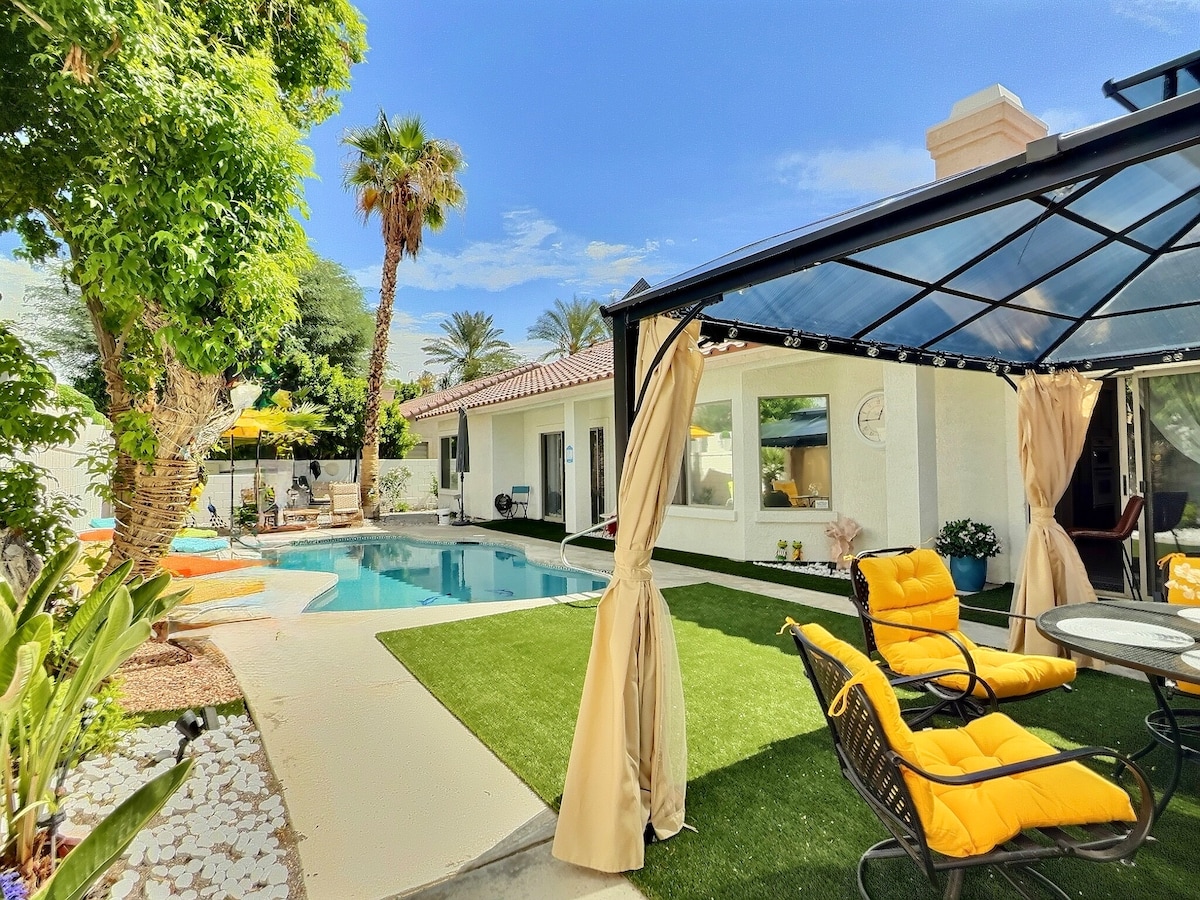There is no place like home, aside from time spent in our stunning 3BR/2BA desert oasis located in the exclusive Indian Palms Country Club and Resort. Soak up the sun in style at The Ocotillo! This 3BR/2BA desert oasis is located inside the exclusive Indian Palms Country Club. Whether you're here for a summer escape, remote work, or fun, this home offers the perfect blend of comfort, convenience, and resort-style relaxation.