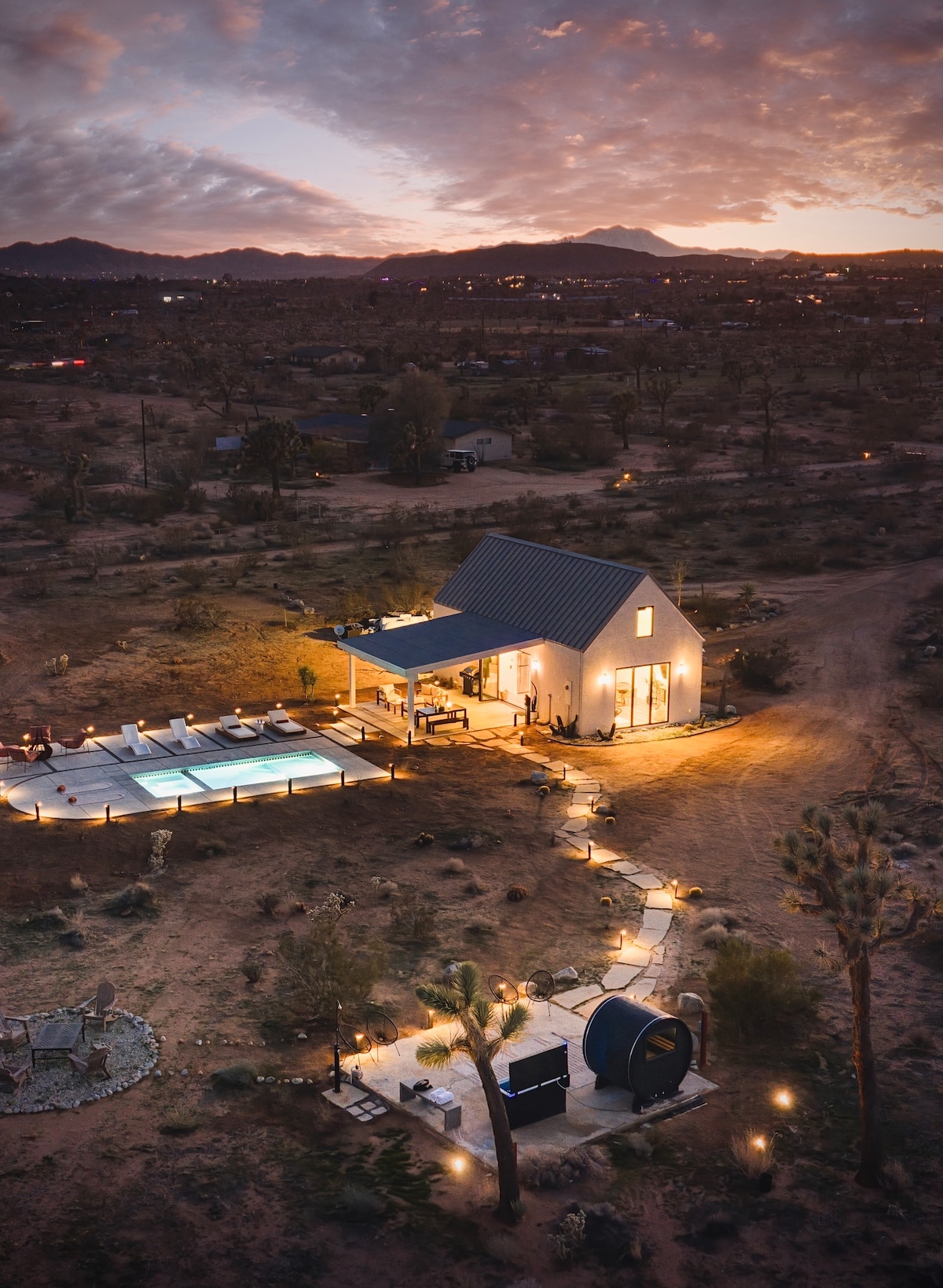 Welcome to "Eternal Sun", a modern, activity-packed masterpiece dropped just outside of Joshua Tree National Park. This home has desert views for days, and will impress even the harshest of critics. Truly an experiential stay with activities to do around every corner. You and your group will have the opportunity to stargaze from our heated pool with expansive desert views, play pool & ping pong outdoors, watch a movie in an outdoor theater, and take a soak in the hot tub under the milky way.