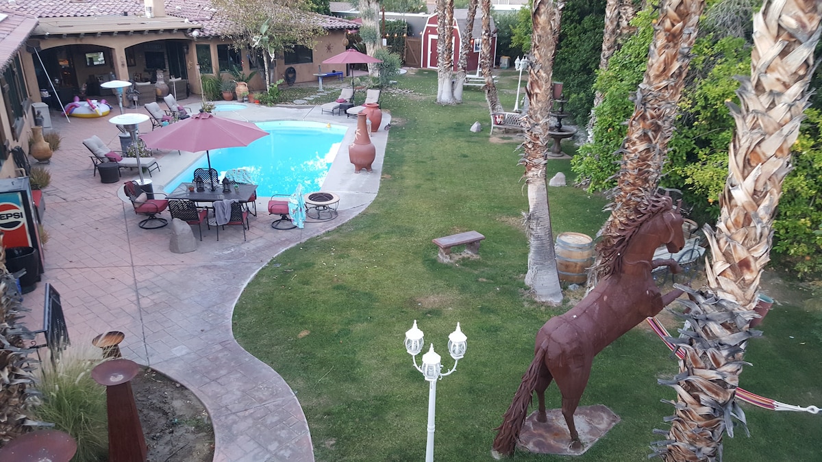 Nestled in the Coachella Valley. Where you can get away from the metropolitan rush. A place where you can either play a game of golf in the morning or take a trip to Joshua Tree for a hike or see nature's beauty. In the evening relax in the quiet patio or take a drive to the casino's located 5 minutes away (Augustine, Spotlight 29 and Fantasy) or enjoy entertainment at the famous Empire Polo Club where the world known Coachella and Stagecoach Music Festival take place only 2 miles away.