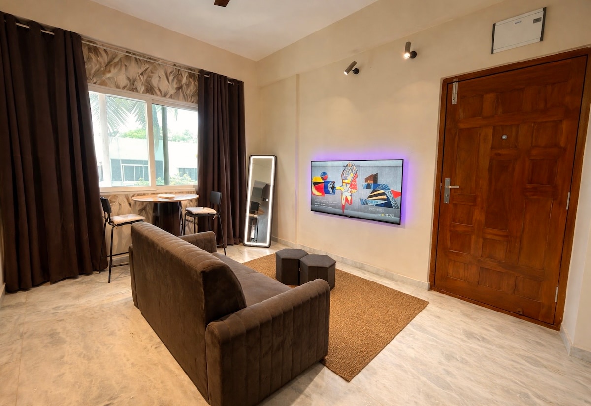 1卧室公寓,干净舒适,现代风格|空调|Mehdipatnam