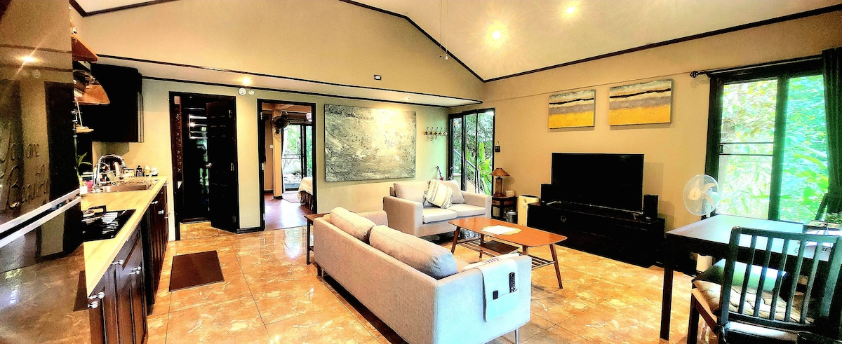 Discover Your Tranquil Retreat in Chiang Mai Nestled amidst lush teak trees, our guesthouse villa offers a serene escape from the city's hustle & bustle. Wake up to nature's sounds and panoramic pond views. Enjoy the sparkling garden pool, perfect for a refreshing dip or sun lounging. All rooms are air-conditioned for your comfort. Come and experience the perfect blend of peaceful countryside living with easy access to the cultural treasures of Chiang Mai just 20-30 minutes away.