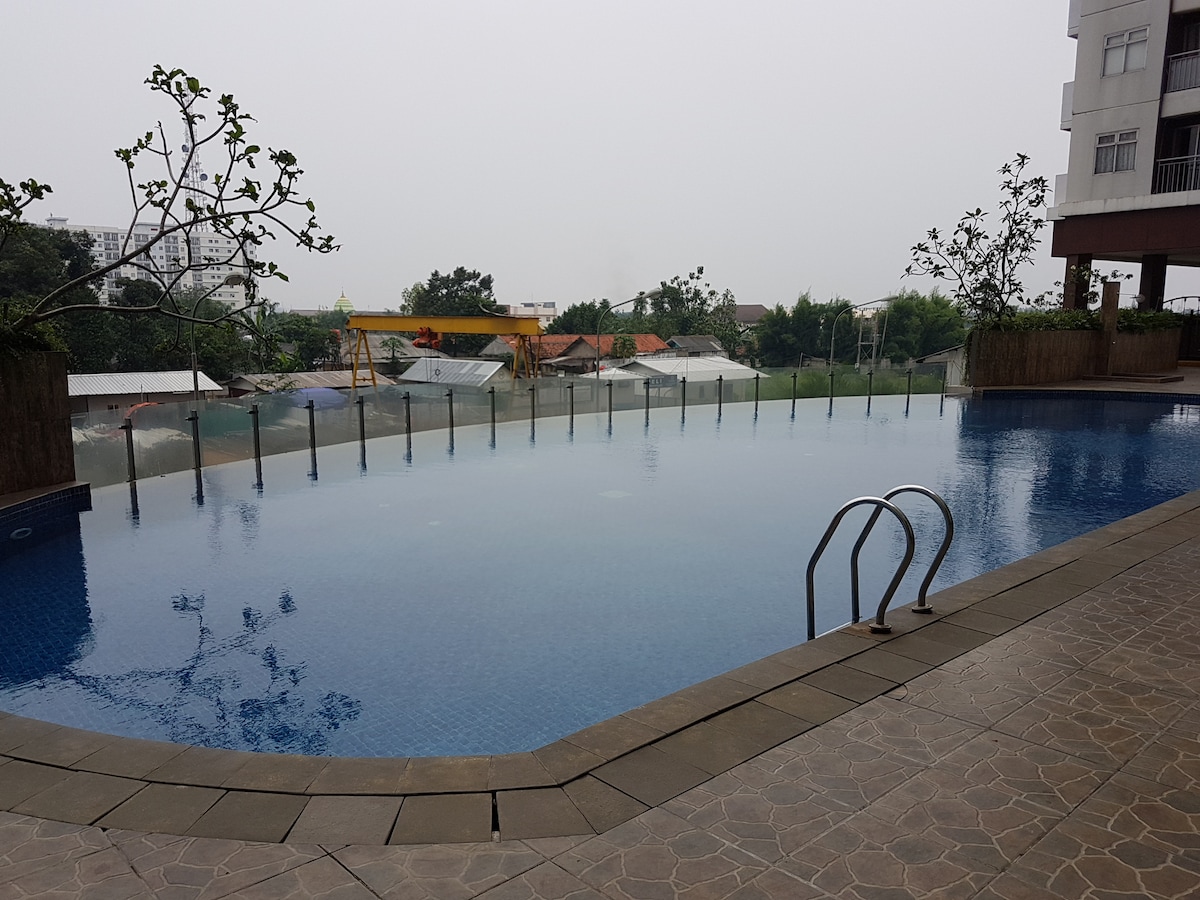 Enjooooy NETFLIX !! This charming room is located in the heart of BSD The branz BSD CITY, five star quality apartment, really close to AEON 2 min to AEON BSD 3 min to ICE BSD 6 min to The breeze 6 min to QBIG Enjoy the beautiful view from our room ~Family mart ~ Facilities Gymnastic studio Gym Indoor & Outdoor swimming pool Kids swimming pool Indoor & Outdoor playground Table tennis Club house SPA ( paid ) Meeting room ( paid ) Game room ( billiard ) Sky Garden etc