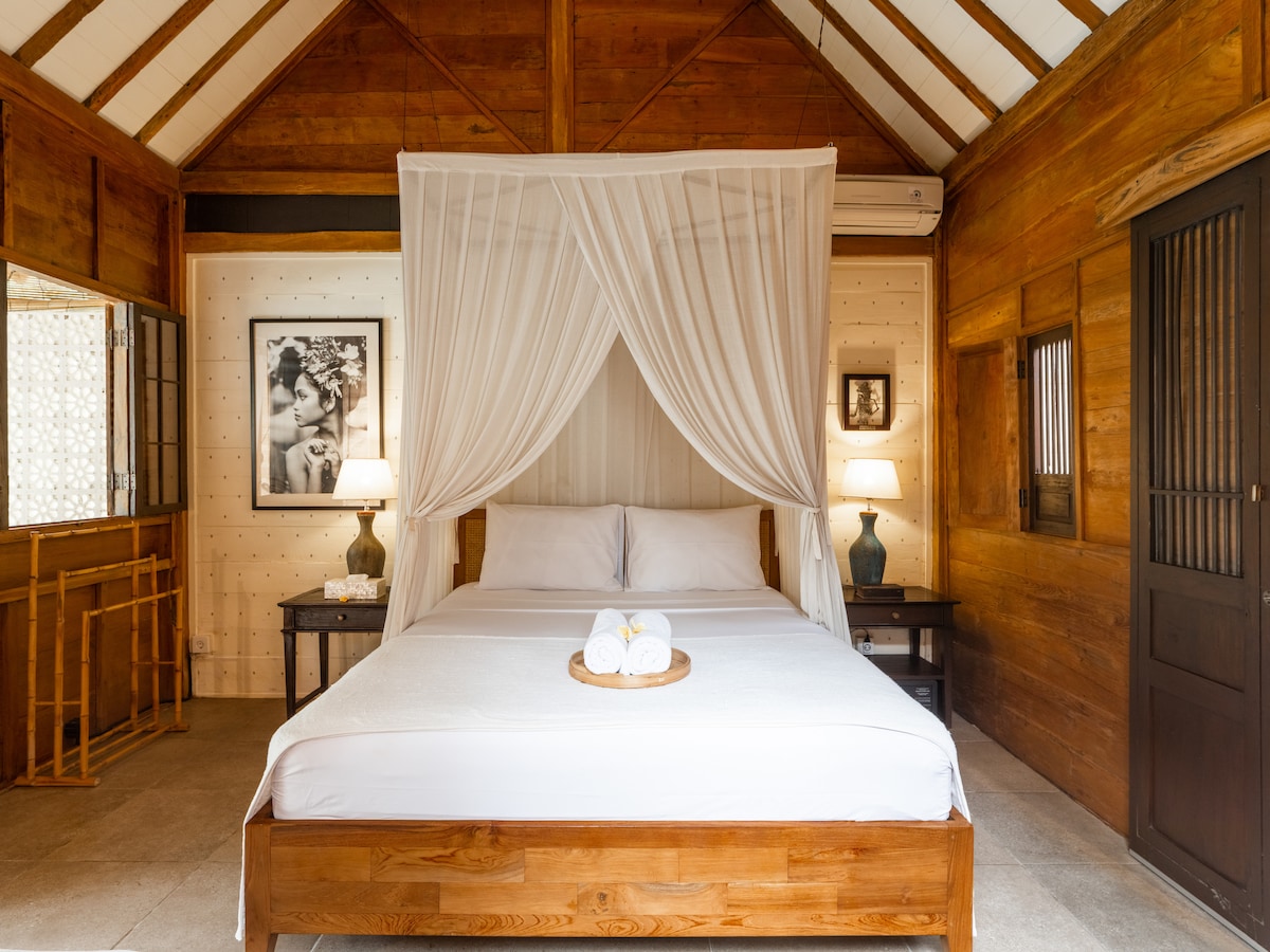 Welcome to KUDUS Bali, a traditional Balinese experience in an authentic “Joglo” – a local wooden house. Nestled in a peaceful rural village, surrounded by the lush rice fields of Sidemen, with breathtaking views of Mount Agung just a short walk away. Immerse yourself in the serene atmosphere of the true Bali, far from the crowds, and perfect for relaxation and discovery. Located only one hour’s drive from Ubud and Sanur, it’s the ideal retreat to reconnect with nature and local tradition.