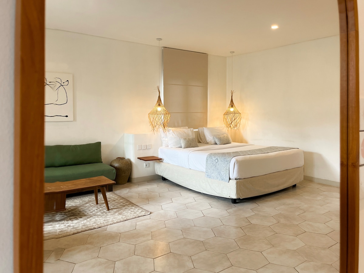 A brand new contemporary Tropical Minimalism Studio, offering a harmonious blend of modern design, and warm natural textures. The space is styled to complement Canggu’s lifestyle sophisticated yet effortlessly comfortable. Located in the most convenient spot, you’ll be just moments away from beaches, trendy cafés, restaurants & beach clubs, while still enjoying a peaceful studio setting. It’s the perfect balance between accessibility and quiet comfort right in the heart of the Canggu lifestyle.