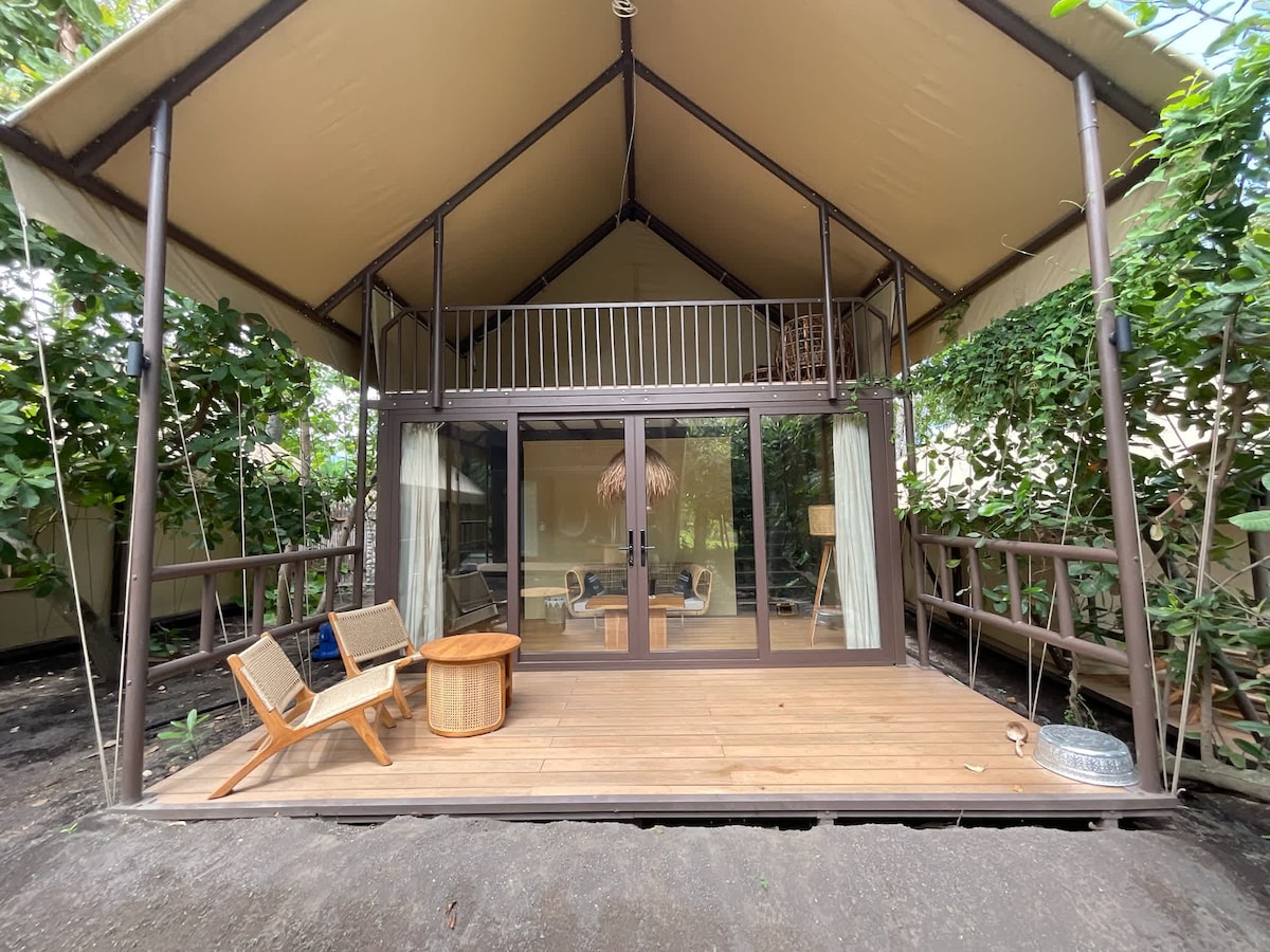 Experience nature in style with this luxury glamping tent nestled within Casa de Monique Bogor. Combining the comfort of a villa with the charm of outdoor living, it’s perfect for couples, families, or small groups — accommodating up to 6 guests.