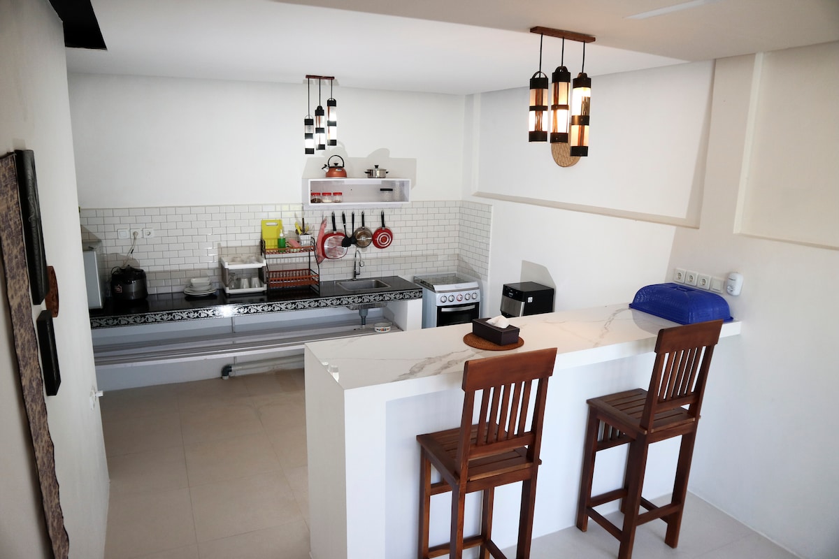 Cozy private townhouse in safe and beautiful location, only 1.5 km from West Beach Pangandaran. Great stay for couples, families or digital nomads. High speed fiber cable internet. -- De Residence Pangandaran is a community of permanent residents, international expatriates, and short-term visitors. Holiday homes will make you cozy, whether you stay a night, month or year. This oceanside community is based on kindness, positive vibes, and passion for the tropical lifestyle.