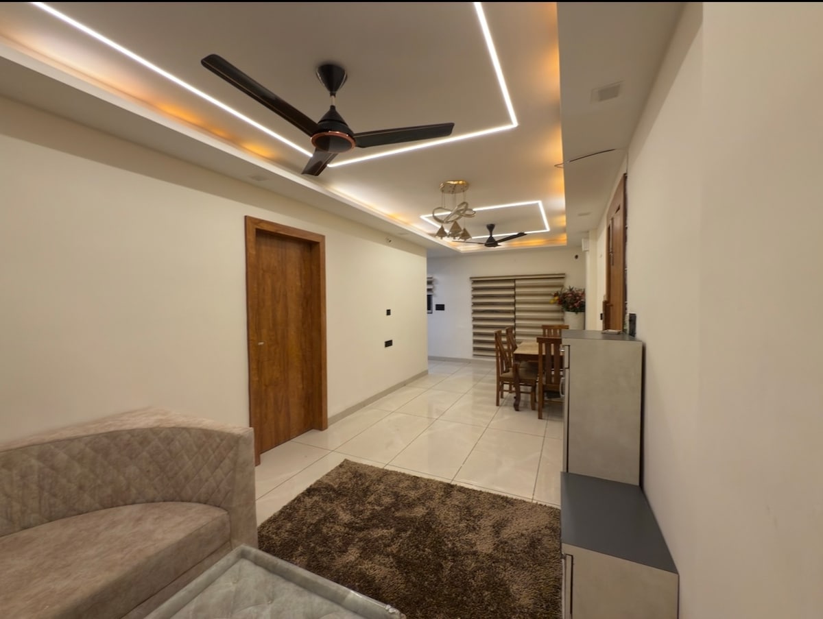 Modern 3BHK luxury apartment with elegant interiors, 4 powerful ACs, 3 stylish bathrooms, and 3 private balconies. Enjoy a sleek modular kitchen, fully automatic washing machine, and secure digital door lock. Perfect for families or professionals seeking comfort, style, and convenience in a peaceful, prime location.