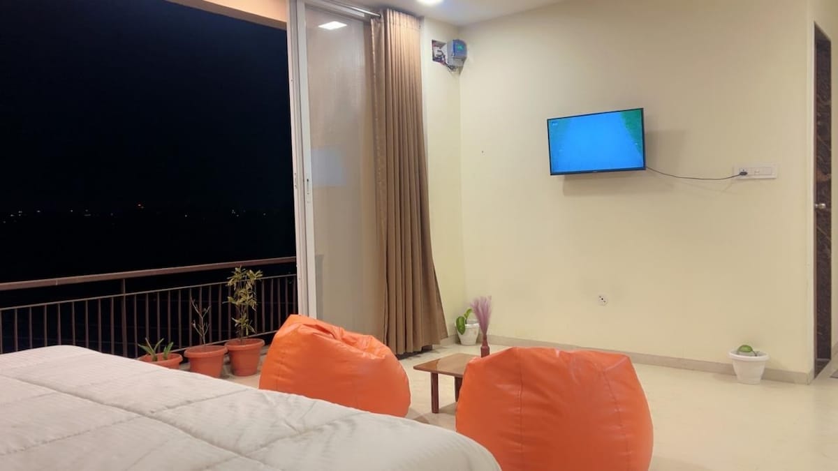 Vijaynagar is the apparently one of the best residential locality of Indore. Situated at Scheme No 74 C, Vijaynagar; a locality known for its cosmopolitan culture with lots of greenery and parks. All good hotels, restaurants, clubs, pubs, parks, etc are in this area. This Studio apartment with balcony, has got all the modern amenities present-day traveller looks for; Smart TV, Extremely High speed broadband 200 Mbps, Inverter AC, Mini fridge, Memory foam mattress, digital water heater.