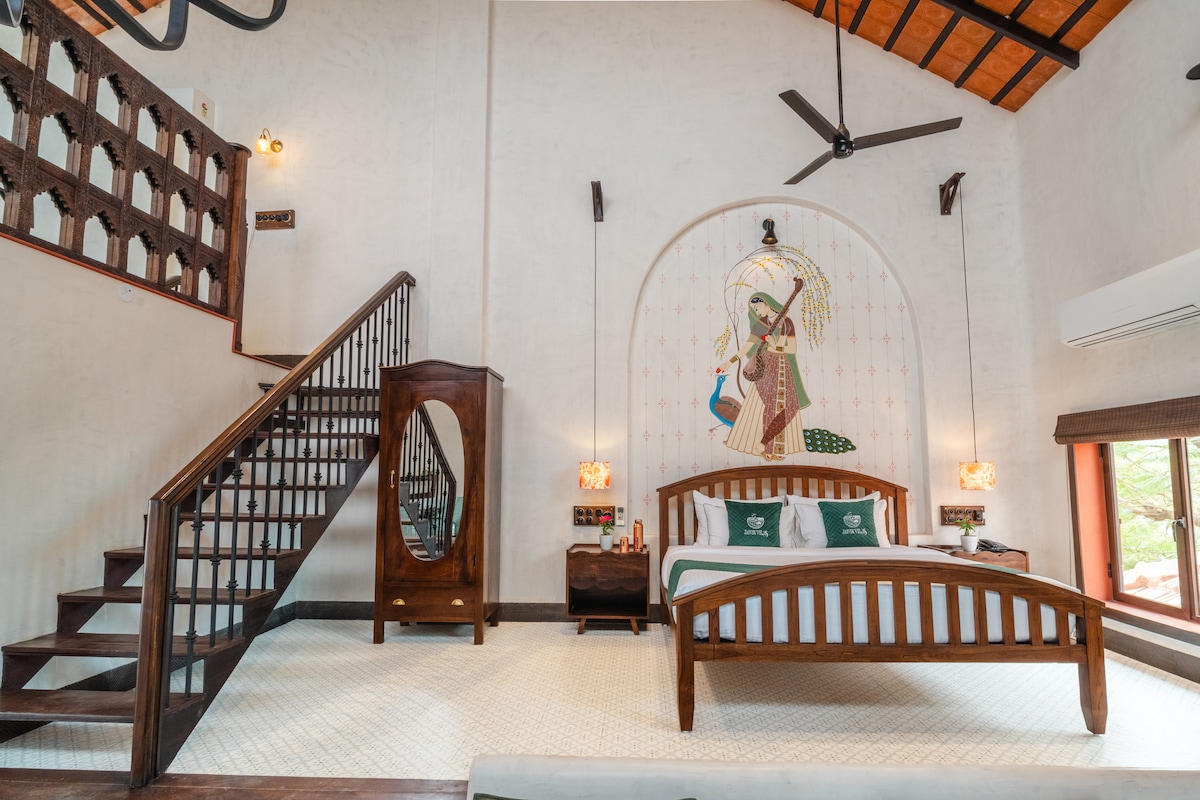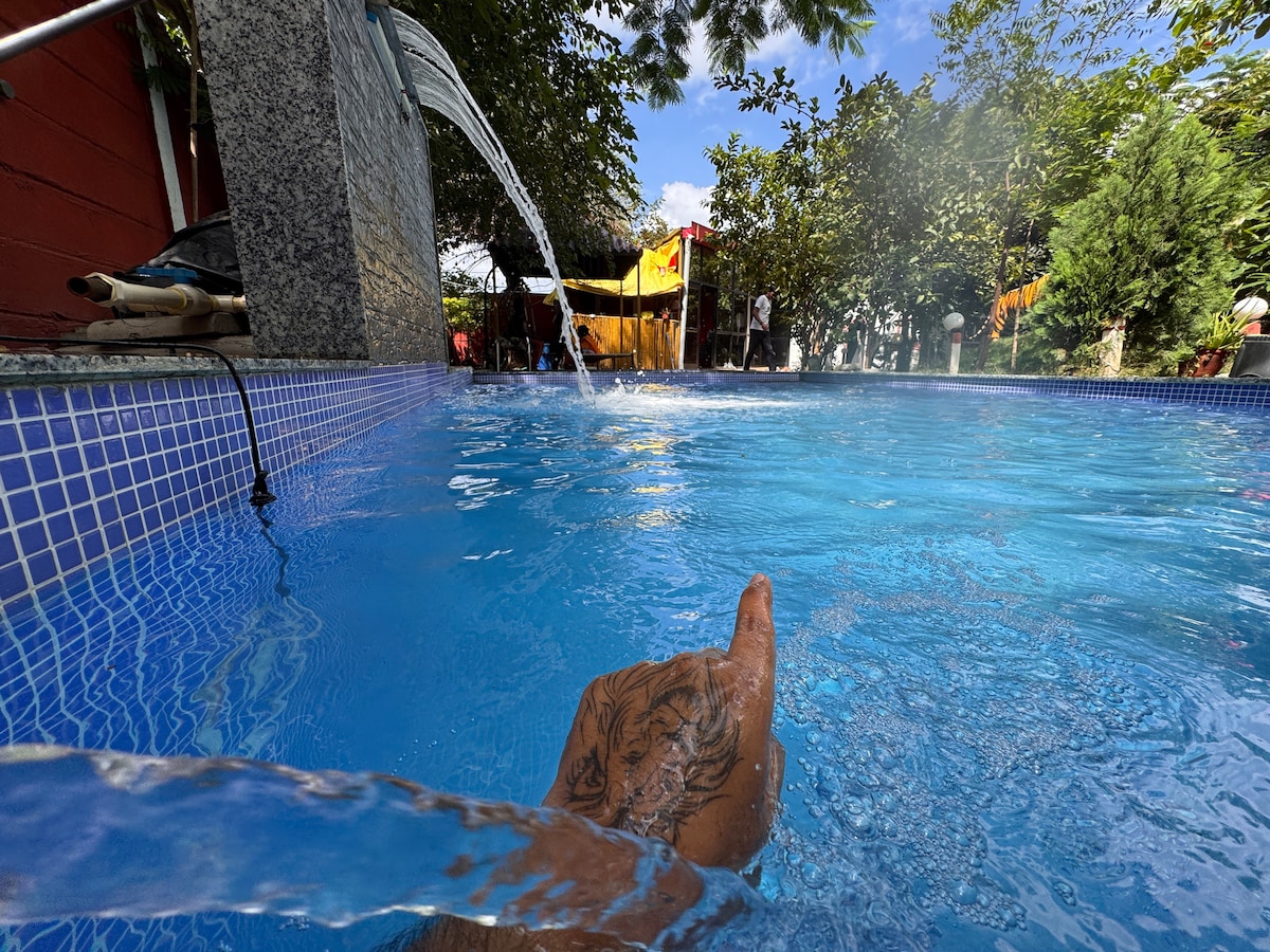 Escape to The 2 Pines – a serene 2-acre urban oasis in Indore. This private farmstay offers two independent bedrooms set among swaying palms and lush gardens, giving you space for both connection and quiet. Start your mornings with birdsong, spend afternoons by the plunge pool or enjoying meals outdoors, and let evenings unfold under a starlit sky — perfect for peaceful getaways or private celebrations. Note: The recreation area (Indoor seating with snooker) will be unavailable on 31 December.
