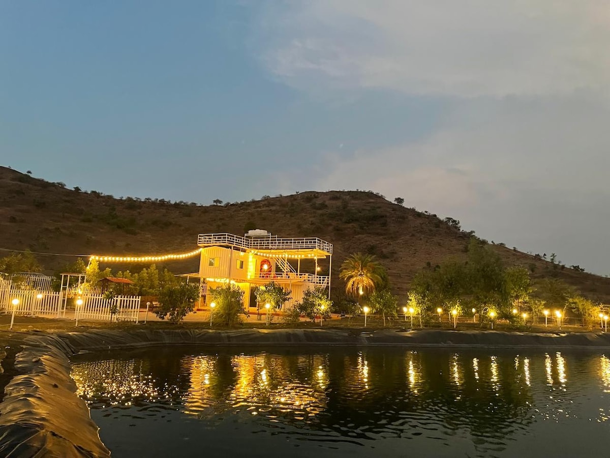 Escape to The 2 Pines – a serene 2-acre urban oasis in Indore. This private farmstay offers two independent bedrooms set among swaying palms and lush gardens, giving you space for both connection and quiet. Start your mornings with birdsong, spend afternoons by the plunge pool or enjoying meals outdoors, and let evenings unfold under a starlit sky — perfect for peaceful getaways or private celebrations. Note: The recreation area (Indoor seating with snooker) will be unavailable on 31 December.