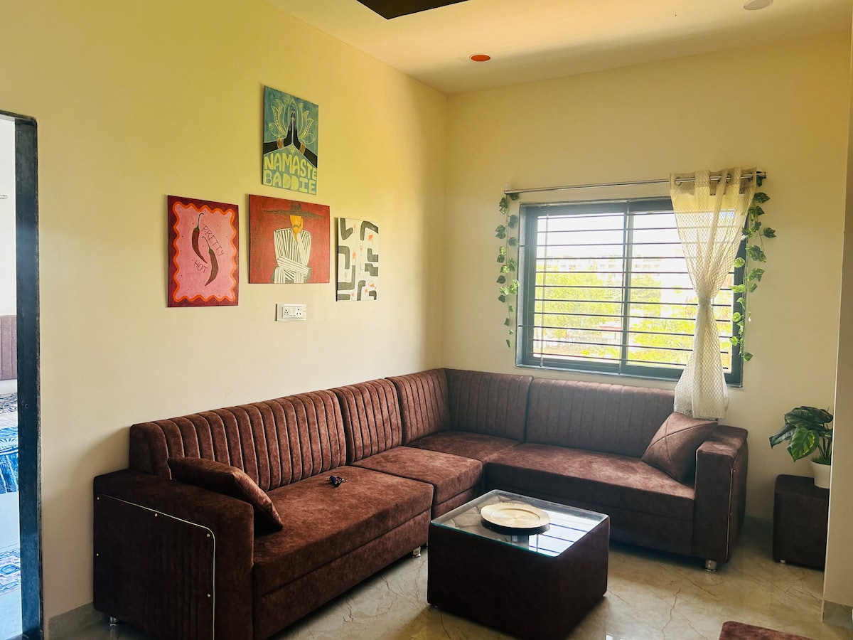 🏡 Cozy and peaceful apartment for 2-4 guests 🛋️ Comfortable living room to relax and unwind 🛏️ Quiet bedroom for a restful sleep 🌿 Private balcony to enjoy fresh air or morning coffee ✨ Clean, bright, and comfortable space 📍 Perfect for a calm and relaxing stay in Indore