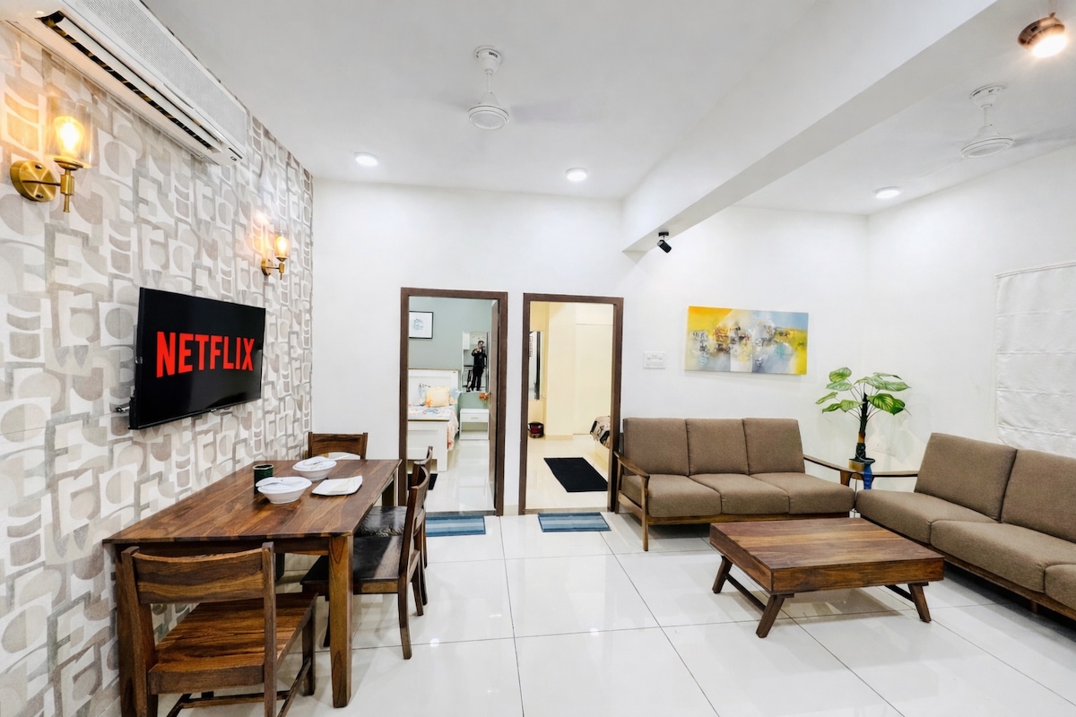 Indulge in the epitome of luxury at our exclusive nestled in the heart of Indore.This meticulously designed retreat offers unparalleled comfort and sophistication, ensuring an unforgettable stay. This stunning 3 BHK duplex offers a blend of comfort and style, making it ideal for couples, family, friends or business travelers.