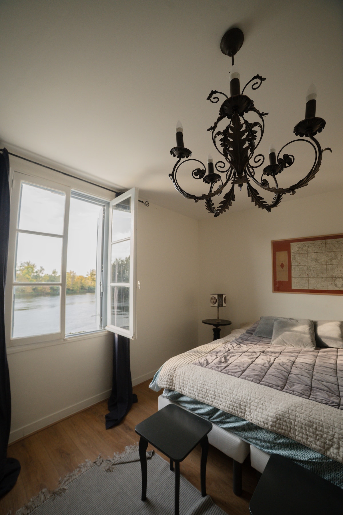 Ce logement, chic et design, se trouve dans le centre historique d'Amboise. Situé à moins de 5 minutes à pied du Château Royal, il fait partie d'une résidence de 16ème siècle avec un jardin à la française. Les restaurants et commerces à 20 m à pied. L’emplacement idéal, avec la place de parking privée se trouve juste devant le logement. Attention ! La Chambre et la salle de bain sont à l’étage, le WC est au rez-de-chaussée. Si c’est un problème de descendre aux WC la nuit, ne réservez pas svp.