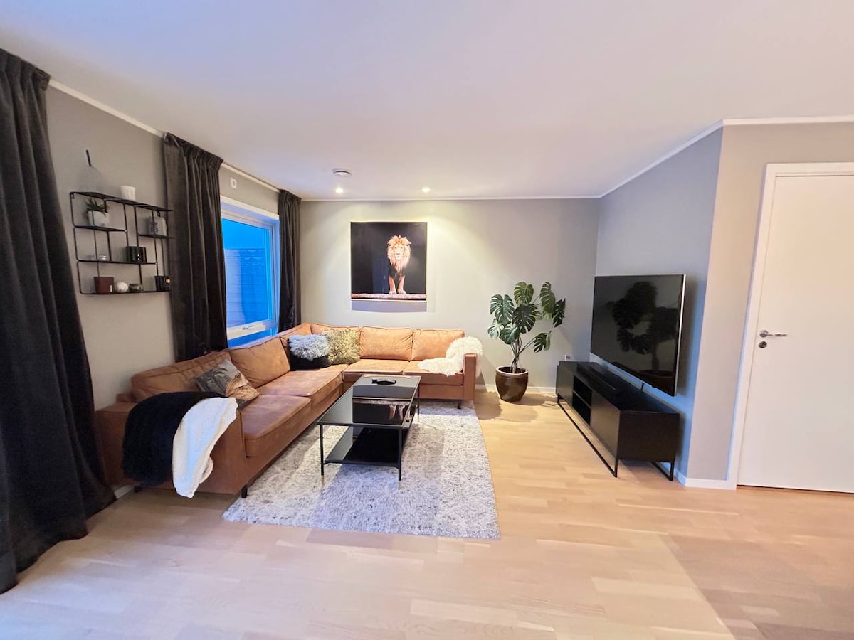 Nyoppusset leilighet med flott beliggenhet. Her er du nær marka med tursti et steinkast unna. Selv om leiligheten ligger rett på kanten av naturen, bor du veldig sentralt. Badstue og badestamp er tilgjengelig mot et ekstra gebyr. De ligger på siden av huset med fin utsikt mot naturen. Prisen: 600 nok for enten badstu eller badestamp, og 1000 nok dersom dere ønsker bruke begge deler i to timer. Dette må avtales med verten i god på forhånd, som varmer opp og gjør alt klar til dere.