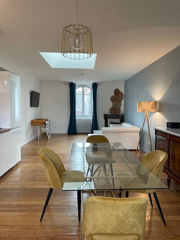 Au cœur de la ville, profitez de mon bel appartement chaleureux de 43 m², proche de tous commerces. Il est composé d'un grand séjour/salon, cuisine équipée (four, micro-onde, plaque vitrocéramique, grille pain, bouilloire…), chambre, salle de bain, douche, WC, lave-linge, Wi-Fi fibre, sticks de café, thé et sucre (cafetière Bosch). Stationnement gratuit à proximité dans la rue. Draps, serviettes et essentiels fournis (sauf gel douche). Arrivées anticipées et départs tardifs sous conditions.