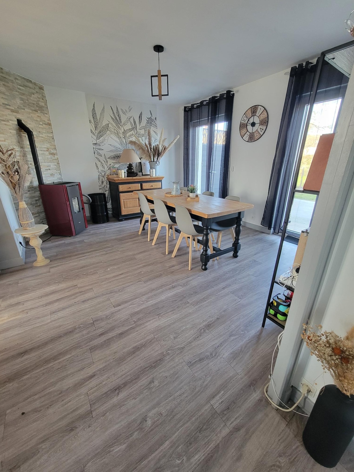 Notre maison en bois climatisée est adaptée aux vacances d'une famille, y compris votre chien. Vous pouvez aussi y organiser votre réunion d'équipe . 2 chambres dont une avec deux lits une personne, une grande salle de 45M2 avec cuisine équipée, lave vaiselle, lave linge séchant et des WC salle de bain. Un baby foot et un terrain en herbe cloturé vous permettront de profiter avec vos enfants, en toute sécurité, y compris de la terrasse en bois. 2 chèvres naines vous accueillerons ;)