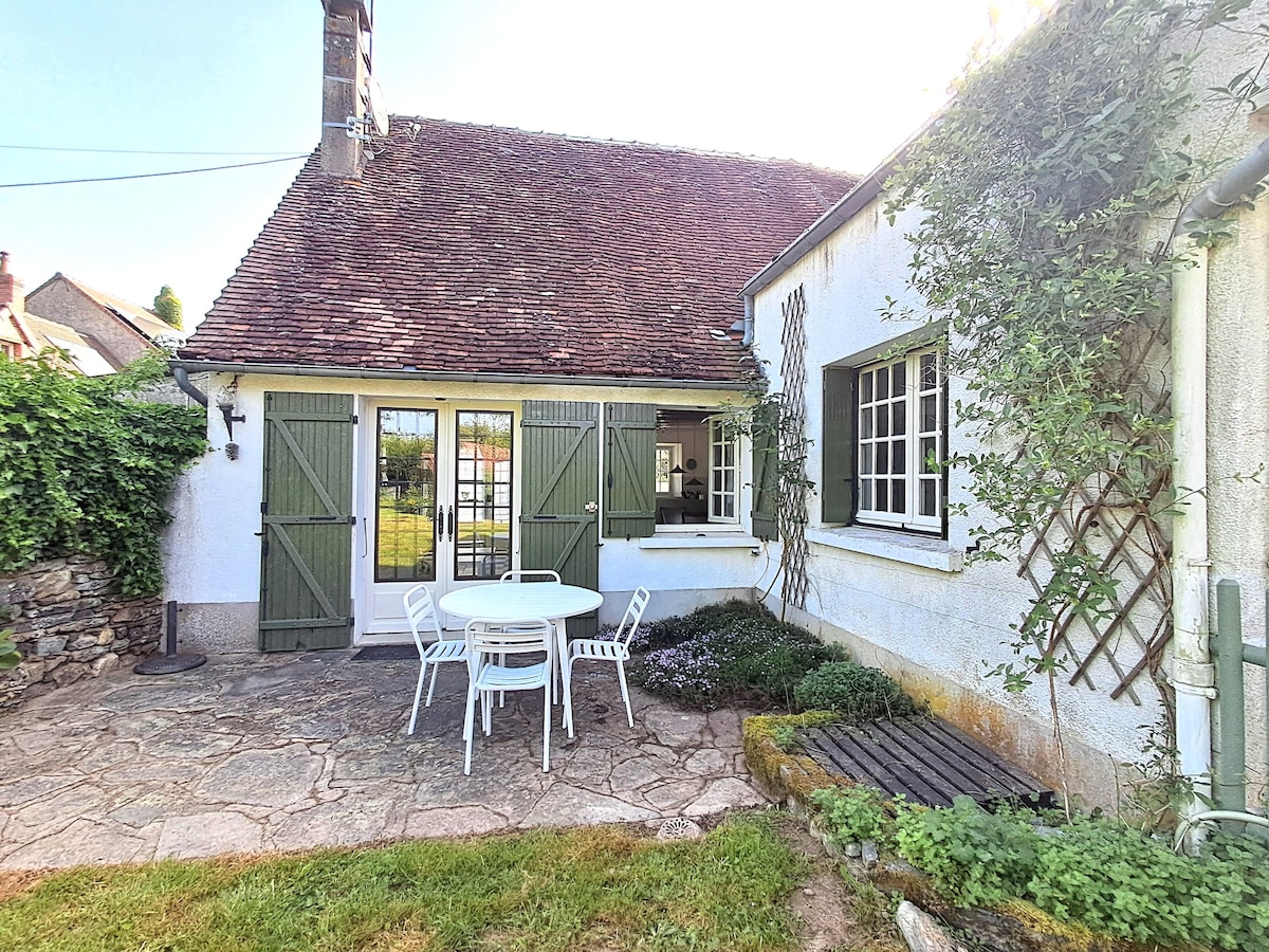 Charmante maison au calme sur les hauteurs de Sainte-Sévère-sur-Indre. Possibilité d'accueillir 4 personnes grâce à une chambre indépendante avec lit double et un canapé convertible dans le séjour. La maison dispose également d'une grande terrasse et d'un jardin, sur lesquels vous pourrez profitez d'un salon extérieur, de transats et d'un barbecue. L'ensemble des équipements de base (draps, serviettes, gel douche/shampoing...) sont fournis avec la location.