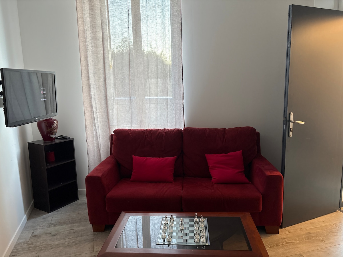 Charmant studio de 42 m2 entièrement refait à neuf, pour 2 personnes, situé en plein centre ville d’Issoudun. Le logement est proche de l’église Saint-Cyr ainsi que de la Tour Blanche. Vous trouverez une cour extérieure de 8m2 vous permettant de profiter des journées ensoleillées notamment le jacuzzi à votre disposition ainsi qu’une plancha et barbecue. Plusieurs commerces se situent à proximité. Veuillez noter que le jacuzzi n’est pas utilisable de novembre à mars.