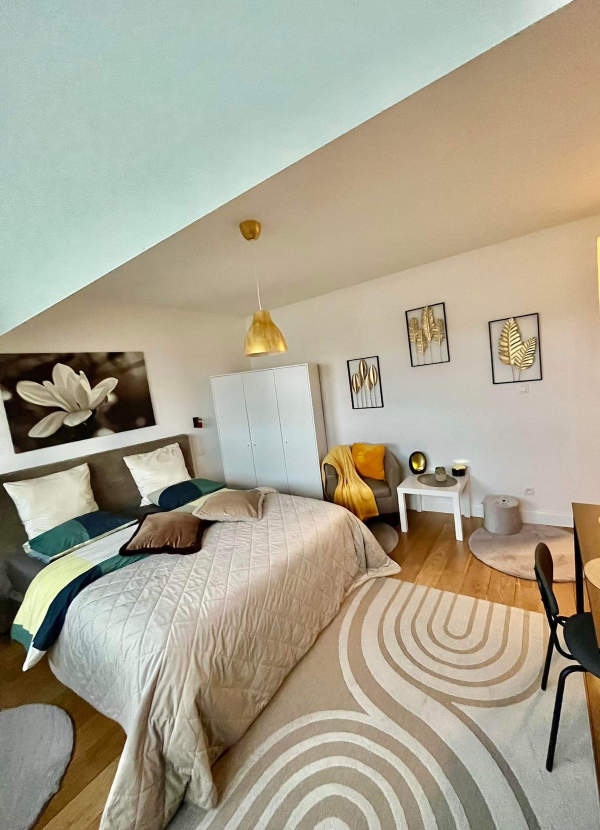 Bonjour! Ce logement lumineux (de +/- 55m2) est composé d'une chambre avec lit double (ou deux lits simples), salle de bain ainsi qu'un living avec cuisine équipée. Le quartier est calme et est situé à 20 minutes du centre-ville en transports direct. A proximité se trouve un supermarché (150m), un parc, des commerces et une gare. Au plaisir de vous rencontrer!