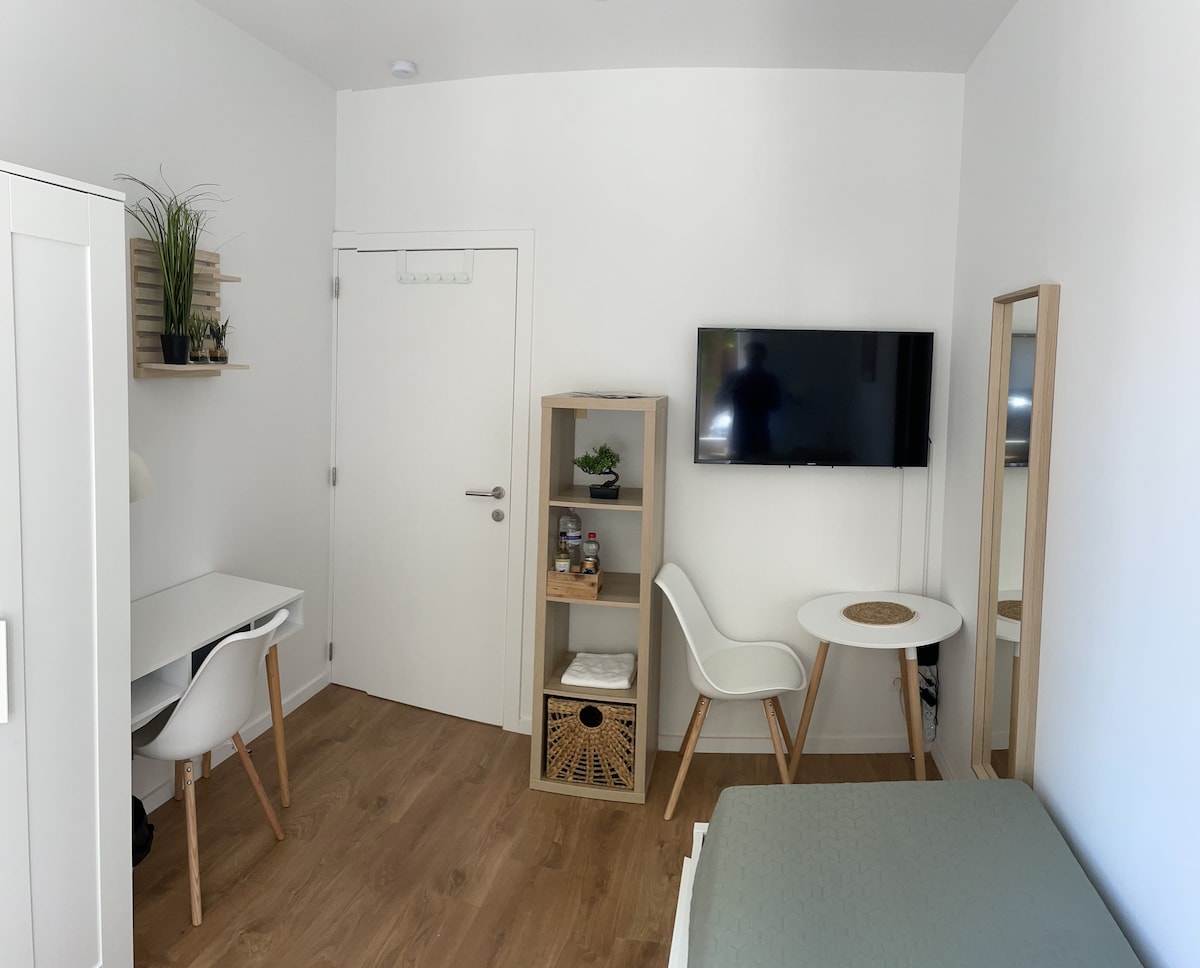Ce superbe appart de 25m2 au 1er étage (pas d’ascenseur) se compose de : → Un lit double confortable (140 x 200) → Cuisine équipée avec micro-ondes, airfryer, grille-pain, machine à café, bouilloire, etc... → Espace de vie avec canapé et table à manger → TV 4K → Wifi rapide et sécurisé → Une salle de douche avec tout le nécessaire → Linge de lit → Linge de bain →> nettoyage pro inclus dans le prix ! Ce logement décoré avec soin est pourvu de tout le nécessaire pour un séjour tout confort.