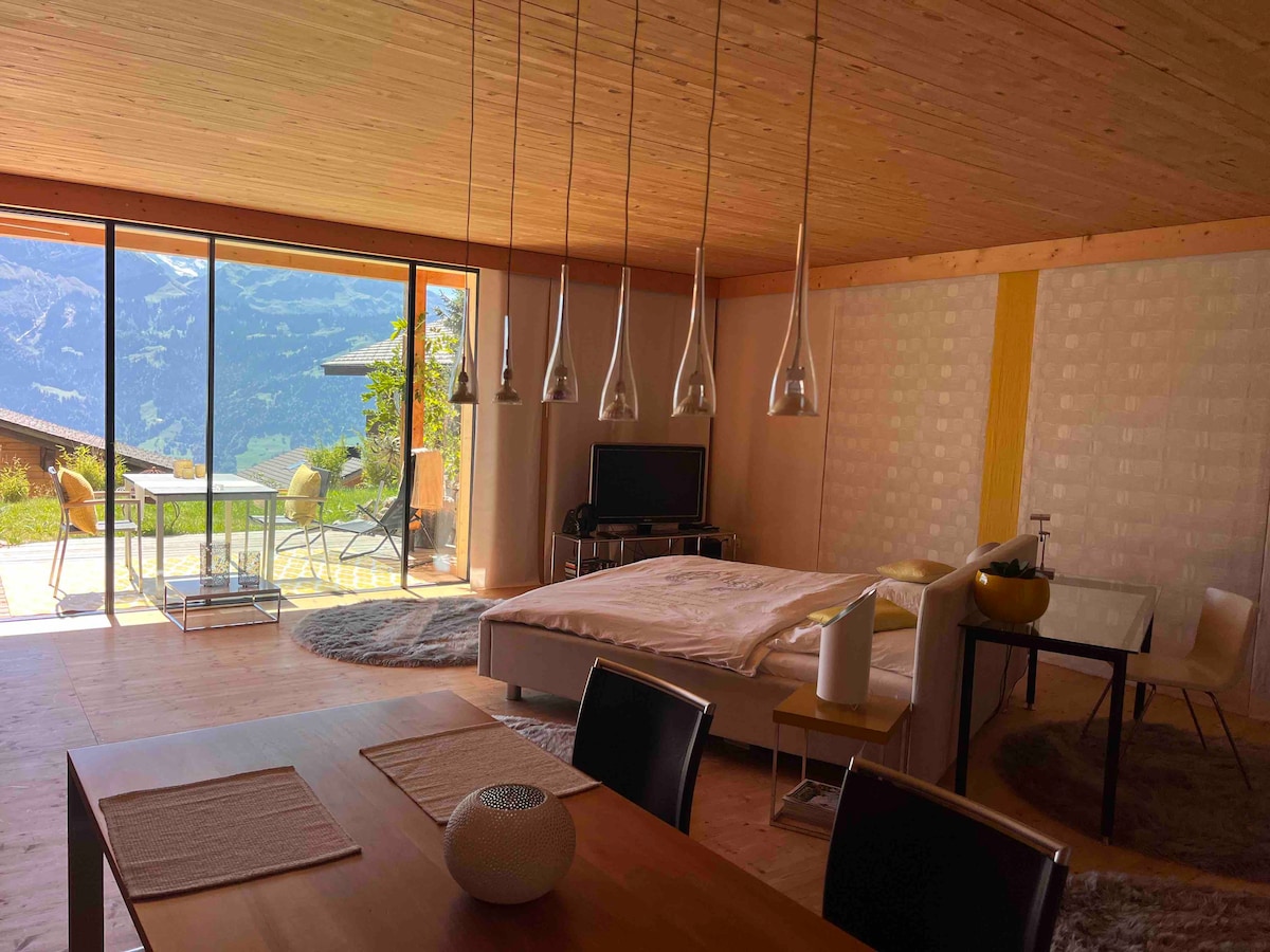 Das Haus liegt auf einem kleinen Hügel. Bitte lesen Sie alle Informationen im Inserat vor Ihrer Buchung durch, um Überraschungen zu vermeiden. Wohnzimmer, Essküche und Schlafzimmer sind grosszügig angelegt. Wunderbare Aussicht auf Berge und Brienzersee vom Wohnzimmer und Terrasse. Das Haus hat zwei Wohnungen. Die obere Wohnung steht Gästen zur alleinigen Verfügung. In der unteren lebt in der Touristen-saison die Gastgeberin. Gepäcktransport zum Haus möglich, wenn die Gastgeberin vor Ort ist.