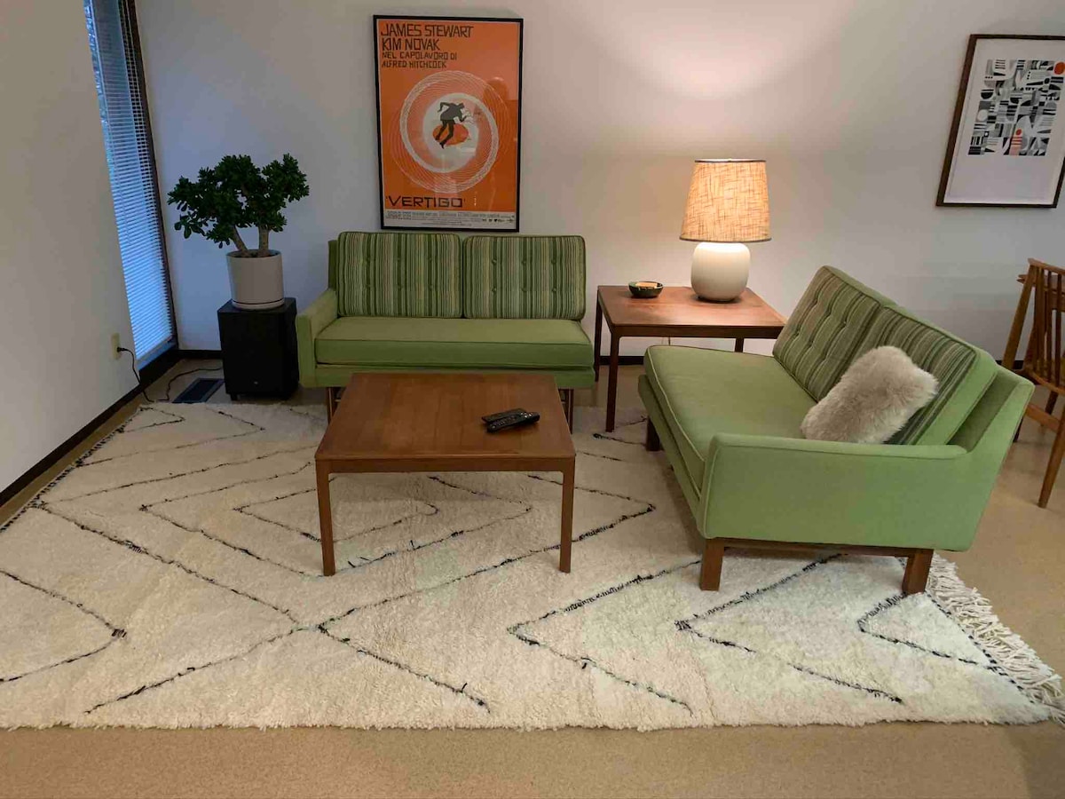 靠近市中心和密歇根州立大学的现代住宿/游戏室