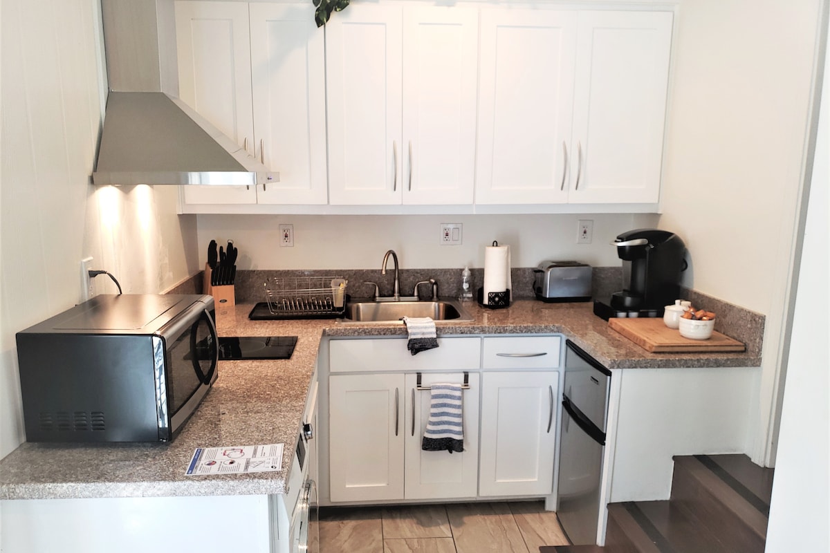 Modern Minimalist Studio — A Peaceful, Cozy Retreat This tiny yet inviting guesthouse studio is designed for comfort and efficiency. Inside, enjoy a thoughtfully equipped space with kitchen basics, central air/heat, and a smart TV. The true highlight is the "Zen-like" peacefulness of the backyard; step outside to find a quiet, serene atmosphere perfect for reflection. An ideal getaway for those seeking rest and a tranquil home base.