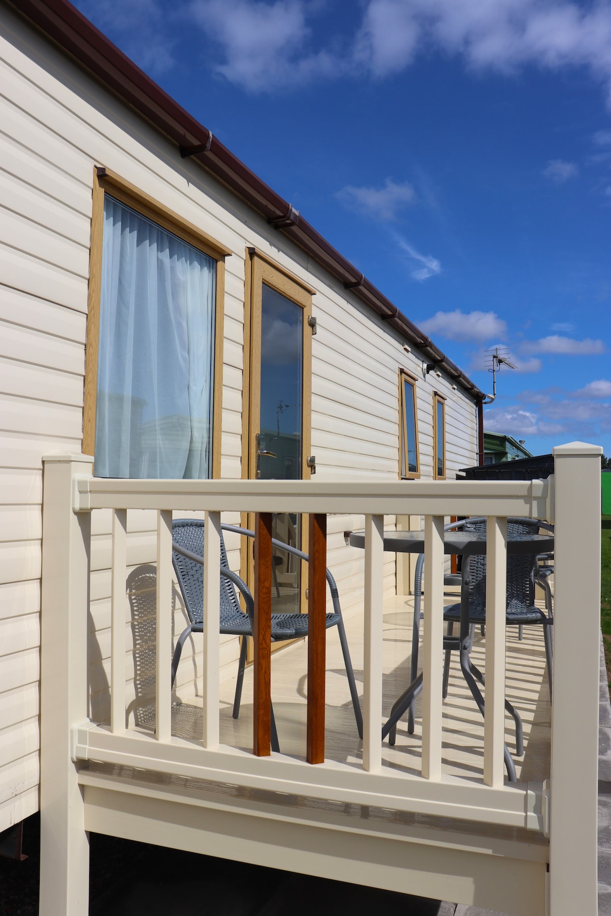 This beautifully presented 35x12 foot caravan offers large living spaces without compromising on storage. We have double glazing, central heating, decking and wifi log in details are on the router. It has recently been furnished and bedding is included in your stay but please bring your towels. We have direct access to the beach and cafe and Fantasy Island is a 5 minute walk and Sealand's pub is across the road.