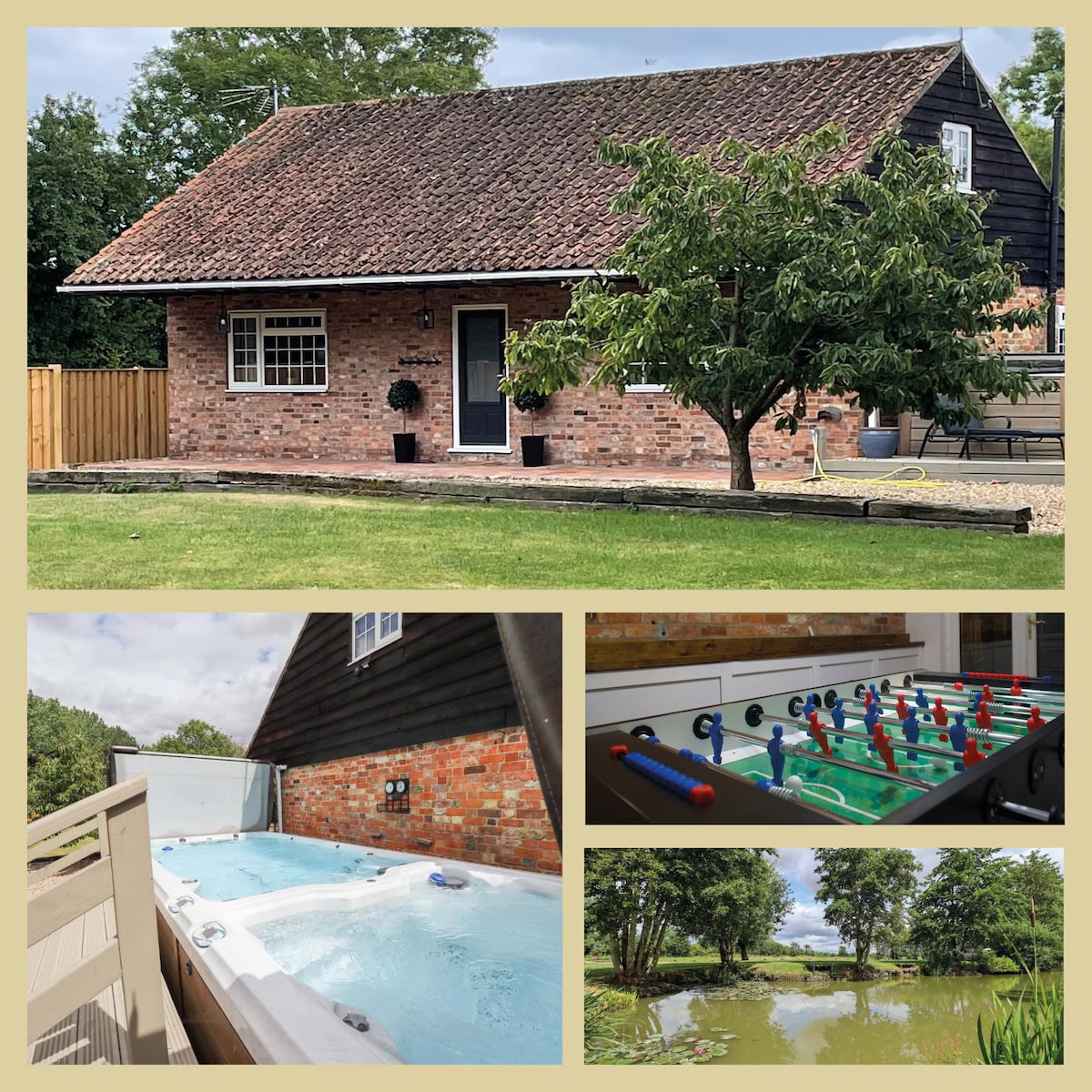 🏡 Family Home with Hot Tub & Garden – Mumby, Lincolnshire Comfy 4-bed home in Mumby with tiled floors, LED lights, TVs in every room, Wi-Fi, and a big kitchen with skylights and island. Bifold doors open onto decking with glass balustrade overlooking the garden and fields — stunning at sunrise and sunset. Enjoy the hot tub, BBQ area, kids’ play space, and pool table in the garage. Near farms, walks, garden centres, and adventure parks. Skegness and Ingoldmells just 15 mins away.