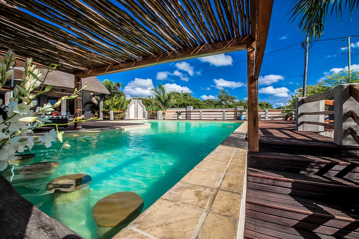 A private oasis of calm and serenity. Spacious airy villa set in two hectares of lush gardens full of cashews and teeming with birdlife. Enjoy a sundowner watching the blood red sun set over the palm trees. We have work space for remote working, pool and gardens for relaxing. Beaches are less than 5 minutes drive away. With two staff members to take care of you, you will truly feel rested and revived after your stay.