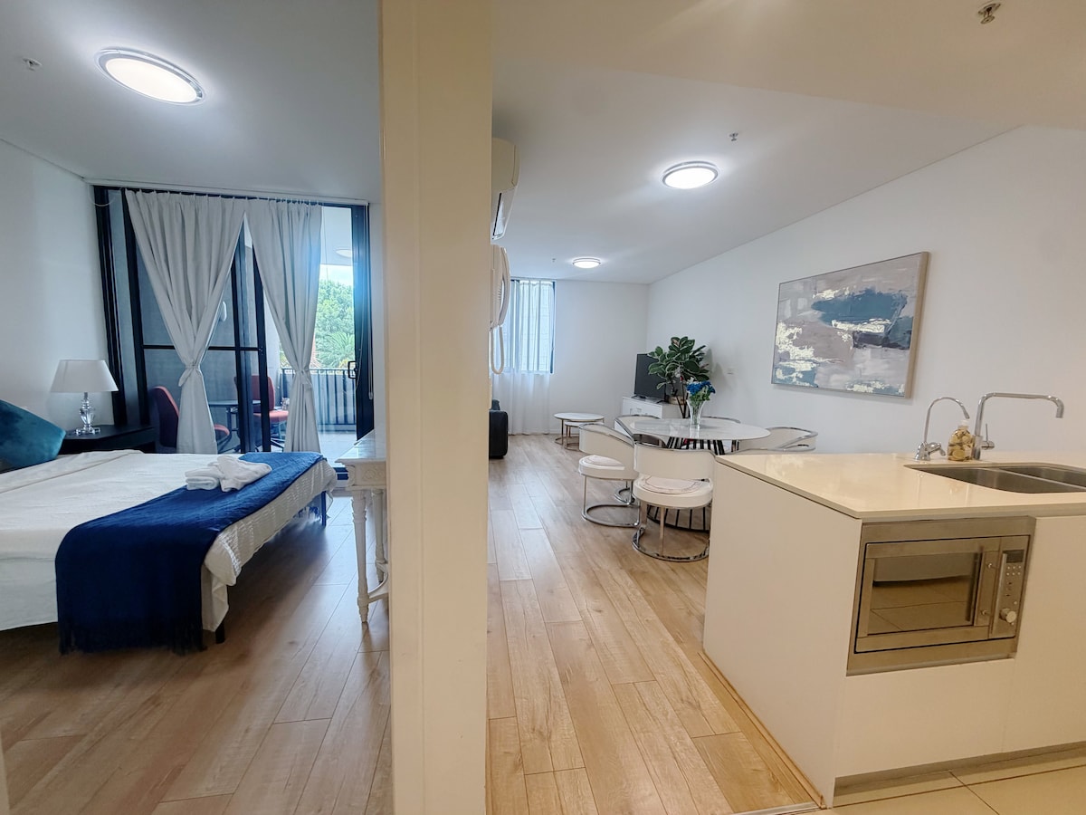 舒适单间公寓|游泳池、健身房和方便的机场通道