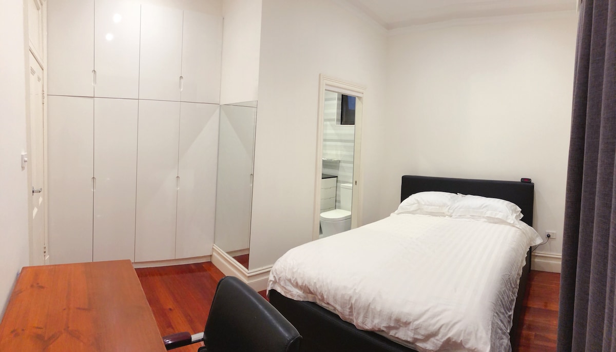 Ideal location to explore city opposite Syd Uni. You'll have the whole house to yourself as I'll be away—see photos. See over 215 reviews of Airbnb listing 'Darlington Terrace House' for more guest descriptions. This is the usual listing when I’m home and hosting. The house includes a main bedroom with a double bed, sunny balcony and double glazed windows, lounge room, middle room with piano, queen-sized bed in 2nd bedroom, kitchen, bathroom, backyard. 5 min walk to train, 10 min to Newtown.