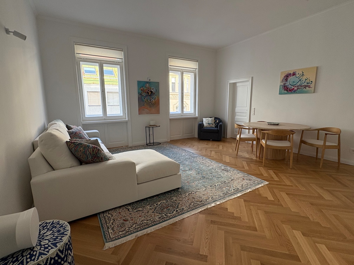 The apartment is located in the middle of Vienna’s most popular design and fashion district. Nearby are the Museumsquartier, Hofburg, Kunsthistorisches Museum, Natural History Museum, the Ringstrasse with its historical buildings, Viennese coffee houses, bars and a multitude of shops. The city center is within walking distance (20 minutes) or accessible by subway in just a few minutes.