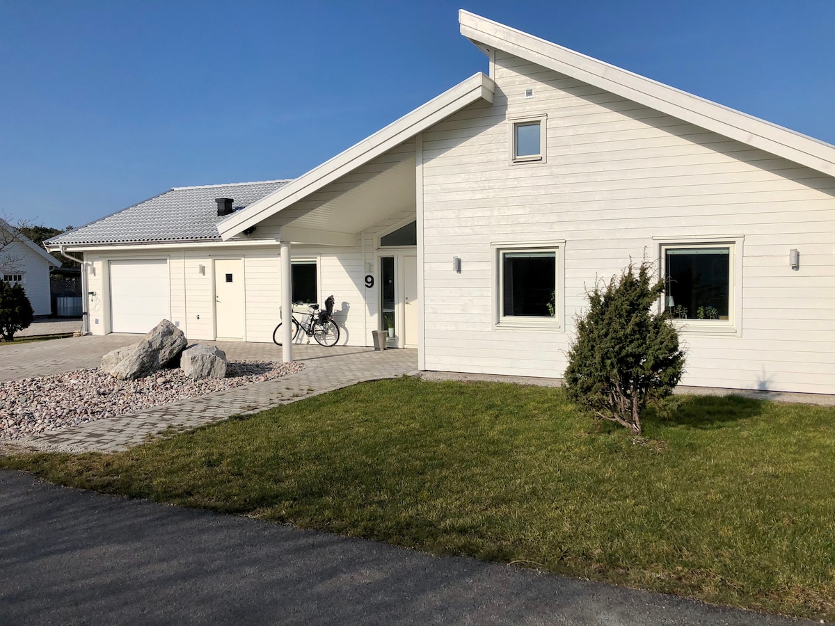 Exklusiv nybyggd villa nära havet och fantastisk natur. Här kan du koppla av och njuta i din privata oas som har allt du behöver; uppvärmd pool, stor kalkstensterass, bubbelbadkar och braskamin. Promenera eller cykla den mysiga grusvägen ner till havet och hamnen där du hittar badstrand, rökt fisk, restaurang, glasskiosk, minigolf och tennisbana. Upptäck Lickershamns vackra omgivningar med flera unika raukområden.