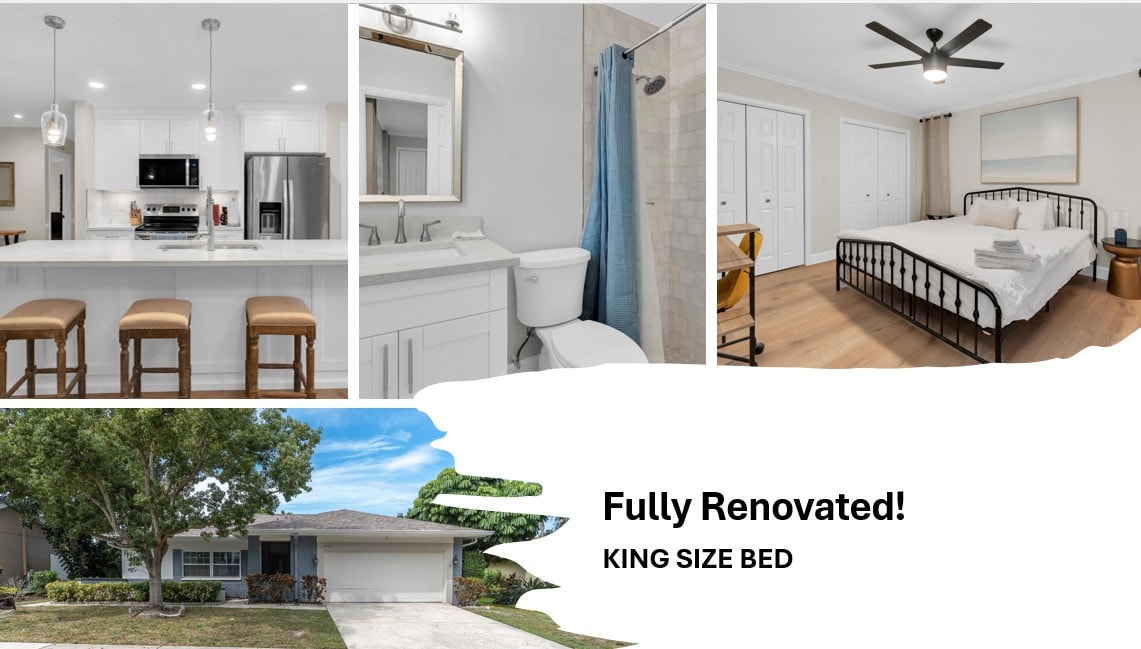 ★ Close to beaches - Honeymoon Island: just 6 miles away. - Clearwater Beach: 15 miles away - crowned the nation's #1 beach Trip Advisor in 2018 ★ Heated saltwater pool ★ Screened-in lanai ★ BBQ grill ★ Large backyard w/ playground ★ Outdoor dining area ★ 3 bedrooms New Mattresses - California king size bed - Queen size bed - Kid-friendly room w/ two bunk beds ★ Renovated kitchen and bathrooms ★ Open living space - great for family gatherings, movie nights ★ Children toys and games