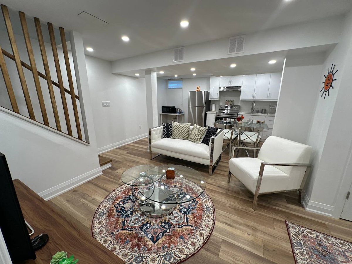 舒适的地下室,完全私密,靠近Go Train和商场
