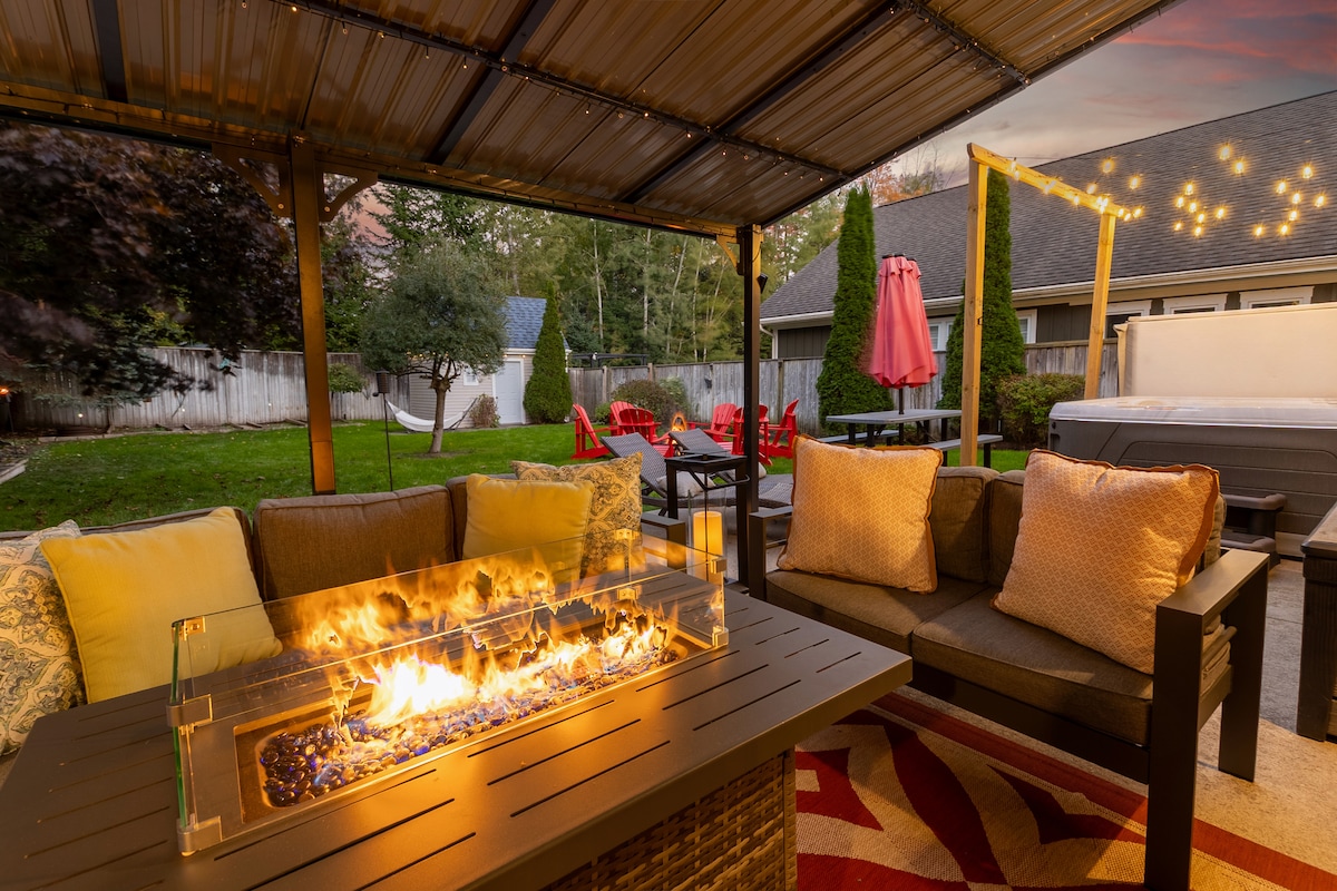 Take a dip in our all-season 8-seater hot tub and enjoy the outdoors during the winter, spring, summer, and fall. This rear-facing ground-level apartment is a unique place that has a style of its own. It is nestled in a tranquil neighborhood and commands pristine cleanliness The surrounding area includes stunning parks and trails, as well as popular stores for shopping. Proximity to Bass Lake, Lake Couchiching, and Lake Simcoe offers abundant opportunities for aquatic activities.