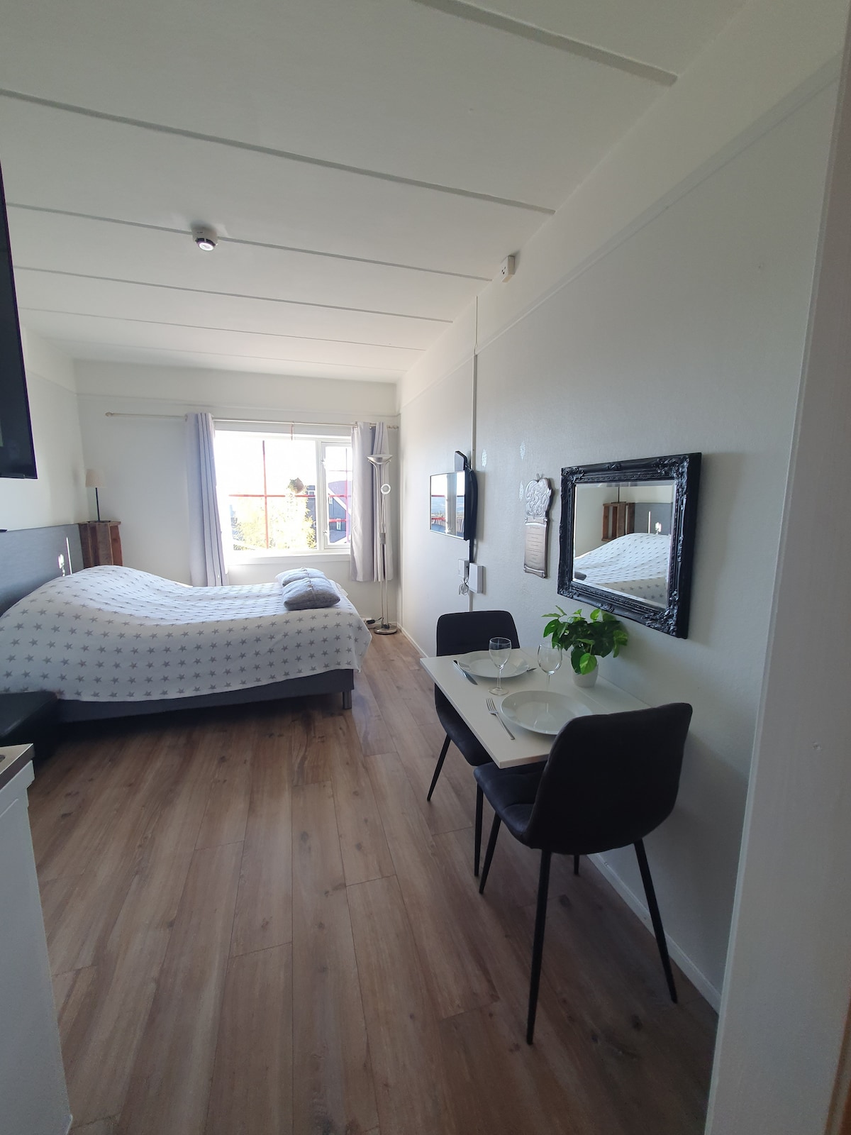 Moderne, godt utstyrt, liten leilighet to gater fra NTNU. Veldig sentral beliggenhet i et rolig villastrøk i Gjøvik. Ett soverom, kjøkken/stue med dobbeltseng, garderobeskap, android TV, kjøkken/stue med spiseplass, sofa som kan være soveplass til en. Pent bad med dusj, vask, toalett. Kort vei til Fagskolen/NTNU og bare 15 minutter å gå til sentrum.