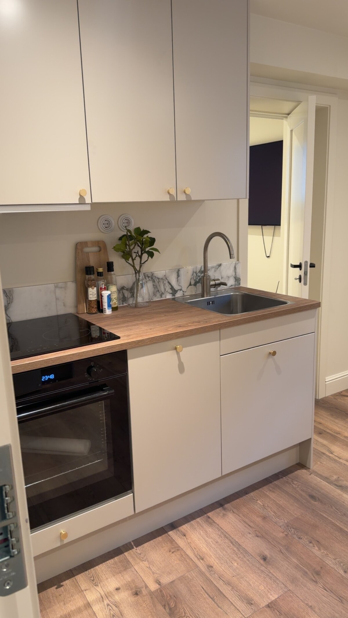 Moderne gjestesuite i separat del av enebolig bygget i 2022. . Sentral beliggenhet med busstopp 100 meter fra huset som tar deg til Oslo sentrum. Gjestesuiten er 28 kvm og leies ut til 1-2 personer. Gjestesuiten består av soverom/oppholdsrom, stort bad og eget kjøkken. Den er utstyrt med 150 cm dobbeltseng. Inkludert i leien er også TV med chromecast, håndklær, sengetøy og WiFi. Det er 100 meter til busstopp som i løpet av 20 min tar deg til Oslo sentrum. Bussen går hvert 15 min.