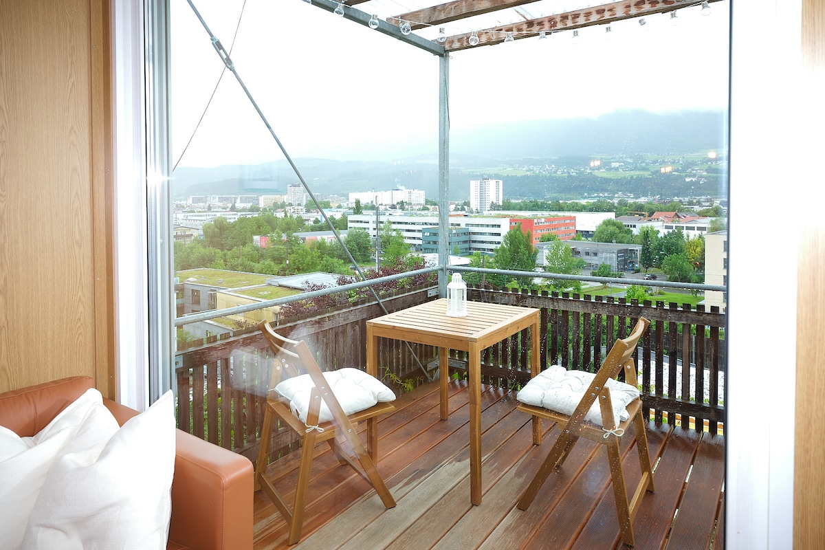Unique view overlooking the Old Town, the River Inn and the Inn Valley. You are in the middle of Innsbruck, next to the Innpromenade, which takes you within 7 min to the Golden Roof in the Oldtown Bakery, Pharmacy right on the bottem of the house . You get pink sunrises and at night the lights are reflected in the river. Enjoy your good night drink on the Terrace .