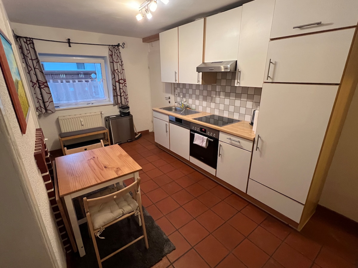 Simple but beautiful 2.5-room apartment on the ground floor (about 50 m² of living space). Guests can also use the terrace and the garden. The apartment is situated quite close to the city centre, by foot it's just about 3 minutes from the train station and 5 minutes to the pedestrian area of Seefeld. Floor plan: Fully equiped kitchen 1x Living room with dining area with a nice oriel with garden view; 1x Bedroom with double bed, a big wardrobe, a shower en-suite and garden view; Toilet Storage