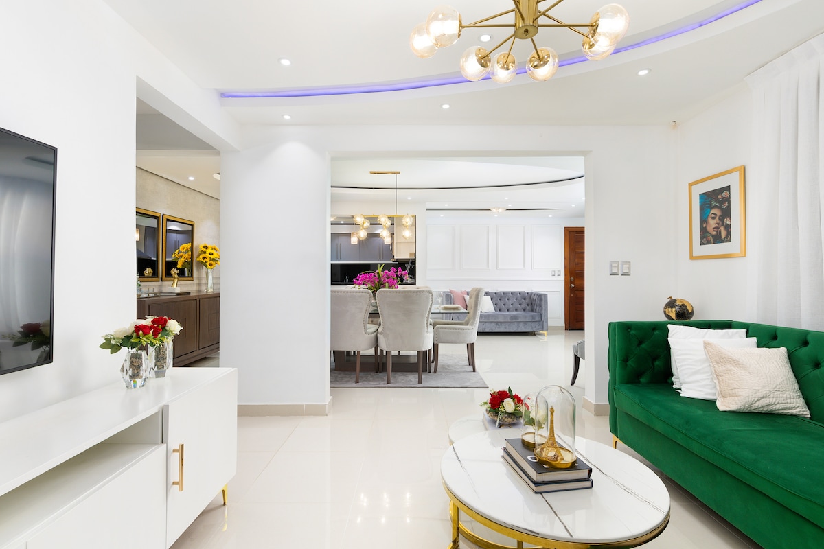 This is a beautiful exclusive suite on the 12th level of the tower with a panoramic view. The concept is modern and luxury . Led iluminated ceilings. Air conditioning in both the living room and bedroom offer a pleasant climate. A very comfortable bed for a good night sleep . 50 -Inch TVwith NETFLIX,WiFi,cable and other amenities are included. Located in one of the most prestigious and secure areas .Whether it’s a business trip or a relaxation vacation, this will be the perfect getaway.