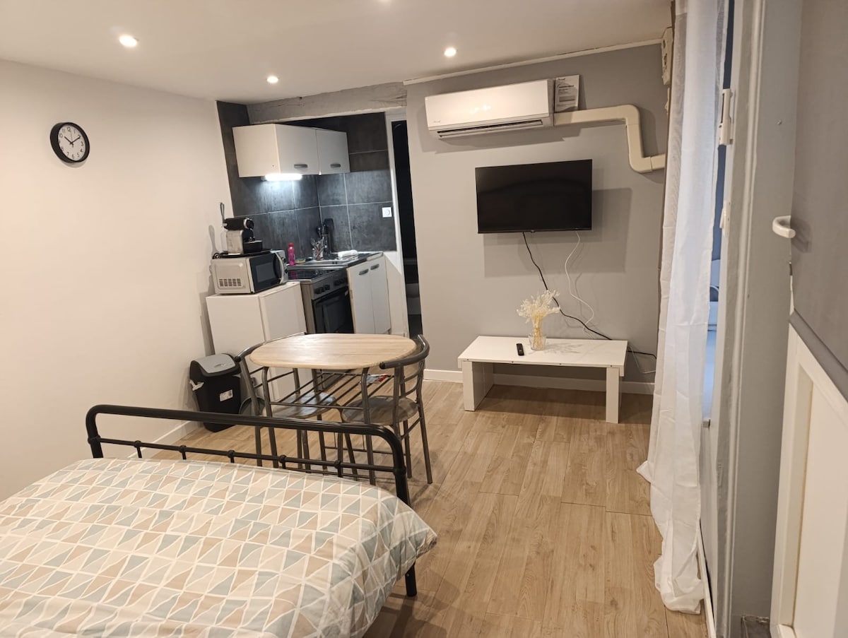 Venez séjourner au calme tout en bénéficiant de la proximité des commerces environnants. Nous sommes situés à moins de 5 minutes du centre historique de Sedan et de son château médiéval (monument préféré des Français). Le studio est spacieux et lumineux, ouvert sur une terrasse couverte par une pergola, avec vue sur le parc. Espace repas avec cuisine d'un côté et chambre avec TV de l'autre. Salle d'eau avec WC. Le studio dispose d'une entrée indépendante.