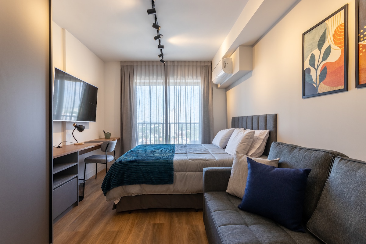 Apenas 600 metros do METRÔ FARIA LIMA. - Studio novo e aconchegante para sua estadia. - SmartTV - Cozinha Equipada - Internet 300mb - 2 camas (sendo um sofá cama) - ar-condicionado Áreas comuns do prédio: - Solarium com lareira - Jardim - Espaço Fitness completo - Coworking com internet free - Cinema (pago a parte) - Lavanderia (paga a parte) - Churrasqueira (paga a parte) - Fácil acesso a hospitais, universidades e eventos da cidade. - Alta oferta de Uber, Taxi e transporte público d