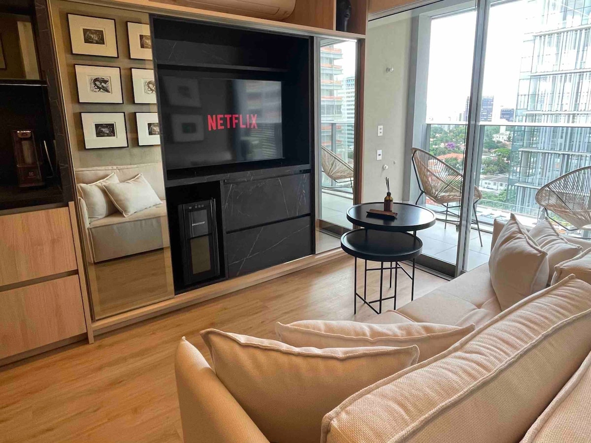 靠近地铁站和Faria Lima l AC l健身房和游泳池